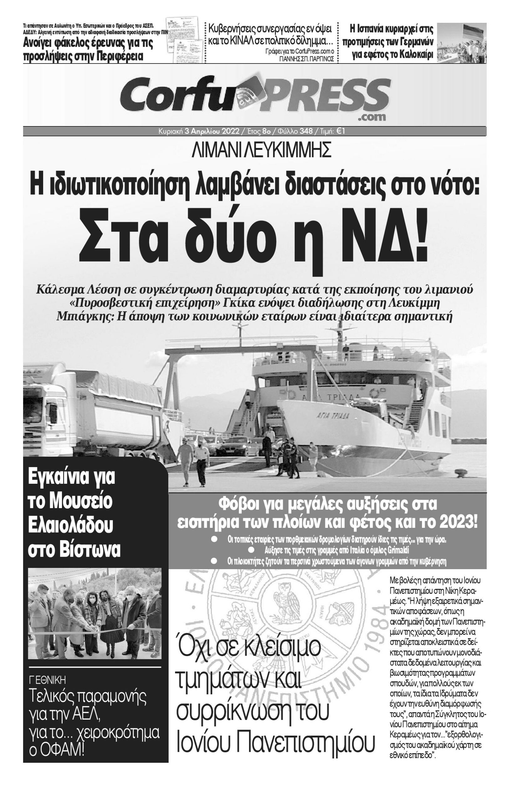 Mην χάσετε την εφημερίδα CorfuPress.com της Κυριακής που περιλαμβάνει πολλά και ενδιαφέροντα θέματα.