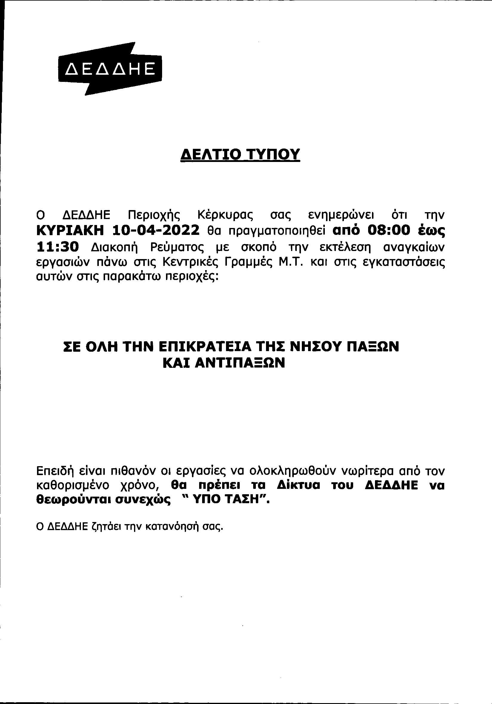 ΚΟΙΝΩΝΙΑΕΛΕΥΘΕΡΟΕΙΔΗΣΕΙΣ Διακοπή ρεύματος στους Παξούς την Κυριακή Αιτία της διακοπής θα είναι οι εργασίες που θα πραγματοποιήσει ο ΔΕΔΔΗΕ. Last updated: 07/04/2022 09:21 ΜΑΝΟΣ ΜΕΘΥΜΑΚΗΣ Published: 07/04/2022 Share SHARE Αιτία της διακοπής θα είναι οι εργασίες που θα πραγματοποιήσει ο ΔΕΔΔΗΕ. Διακοπή ρεύματος τη Δευτέρα-Δείτε που Που θα γίνει διακοπή ρεύματος την Τετάρτη Που θα γίνει διακοπή ρεύματος την Τετάρτη Που θα γίνουν προγραμματισμένες διακοπές ρεύματος το διάστημα 23-25 Αυγούστου Έρχεται διακοπή ρεύματος στη Βόρεια Κέρκυρα Share This Article Facebook Whatsapp Whatsapp Email Copy Link Print Previous Article Τον έπιασαν για κατοχή κάνναβης και κοκαΐνης Next Article Δύο διακομιδές τα τελευταία 24ωρα… Δεν υπάρχουν Σχόλια Δεν υπάρχουν Σχόλια Αφήστε μια απάντηση Ακύρωση απάντησηςΗ ηλ. διεύθυνση σας δεν δημοσιεύεται. Τα υποχρεωτικά πεδία σημειώνονται με *Σχόλιο * Όνομα * Email * Ιστότοπος Αποθήκευσε το όνομά μου, email, και τον ιστότοπο μου σε αυτόν τον πλοηγό για την επόμενη φορά που θα σχολιάσω. ΑναζήτησηΑναζήτησηRecent PostsΌλα τα μάτια στον Θοδωρή, τον καπετάνιο μας! Τη Δευτέρα 22 Σεπτεμβρίου γιορτάζει… Σαν Σήμερα 22/9: Τα σημαντικότερα γεγονότα… Η πρόγνωση του καιρού Έφηβοι Ιονίου: Με περίπατο, συνεχίζουν στο Rising Stars! Recent CommentsΧωρίς σχόλια για εμφάνιση.