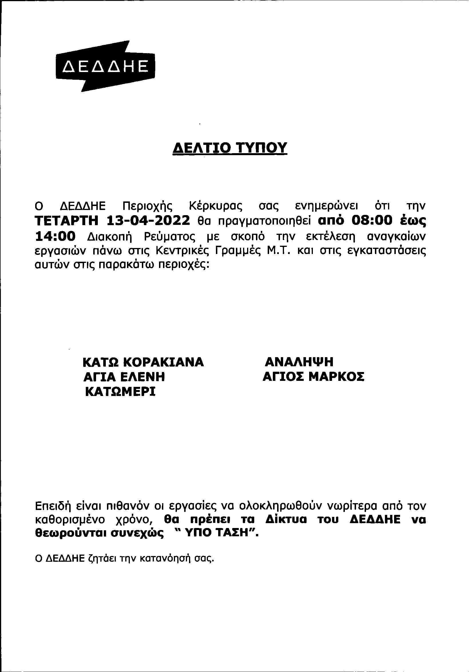 ΚΟΙΝΩΝΙΑΕΛΕΥΘΕΡΟΕΙΔΗΣΕΙΣ Εξάωρη διακοπή ρεύματος την Τετάρτη Αιτία οι εργασίες του ΔΕΔΔΗΕ στις κεντρικές γραμμές μεσαίας τάσης. Last updated: 05/10/2025 14:16 CorfuPress.com Published: 11/04/2022 Share SHARE Αιτία οι εργασίες του ΔΕΔΔΗΕ στις κεντρικές γραμμές μεσαίας τάσης. Διακοπή ρεύματος τη Δευτέρα-Δείτε που Που θα γίνει διακοπή ρεύματος την Τετάρτη Που θα γίνει διακοπή ρεύματος την Τετάρτη Που θα γίνουν προγραμματισμένες διακοπές ρεύματος το διάστημα 23-25 Αυγούστου Έρχεται διακοπή ρεύματος στη Βόρεια Κέρκυρα Share This Article Facebook Whatsapp Whatsapp Email Copy Link Print Previous Article Στοίχημα: Προβάδισμα το Under στο ντέρμπι αιωνίων Next Article Συναυλία Θρησκευτικής Μουσικής: Από την Σταύρωση στην Ανάσταση Δεν υπάρχουν Σχόλια Δεν υπάρχουν Σχόλια Αφήστε μια απάντηση Ακύρωση απάντησηςΗ ηλ. διεύθυνση σας δεν δημοσιεύεται. Τα υποχρεωτικά πεδία σημειώνονται με *Σχόλιο * Όνομα * Email * Ιστότοπος Αποθήκευσε το όνομά μου, email, και τον ιστότοπο μου σε αυτόν τον πλοηγό για την επόμενη φορά που θα σχολιάσω. ΑναζήτησηΑναζήτησηRecent PostsΌλα τα μάτια στον Θοδωρή, τον καπετάνιο μας! Τη Δευτέρα 22 Σεπτεμβρίου γιορτάζει… Σαν Σήμερα 22/9: Τα σημαντικότερα γεγονότα… Η πρόγνωση του καιρού Έφηβοι Ιονίου: Με περίπατο, συνεχίζουν στο Rising Stars! Recent CommentsΧωρίς σχόλια για εμφάνιση.