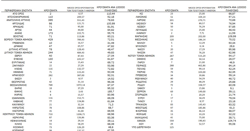 Αναλυτικά, η διασπορά των νέων κρουσμάτων ανά περιφερειακή ενότητα: