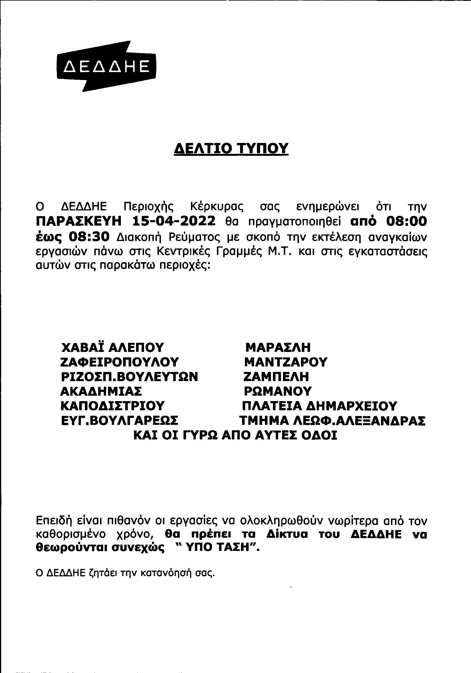ΚΟΙΝΩΝΙΑΕΛΕΥΘΕΡΟΕΙΔΗΣΕΙΣ Διακοπή ρεύματος την Παρασκευή σε πολλά σημεία της πόλης Η διακοπή θα είναι ημίωρη και θα πραγματοποιηθεί λόγω εργασιών του ΔΕΔΔΗΕ. Last updated: 14/04/2022 09:23 CorfuPress.com Published: 14/04/2022 Share SHARE Η διακοπή θα είναι ημίωρη και θα πραγματοποιηθεί λόγω εργασιών του ΔΕΔΔΗΕ. Διακοπή ρεύματος τη Δευτέρα-Δείτε που Που θα γίνει διακοπή ρεύματος την Τετάρτη Που θα γίνει διακοπή ρεύματος την Τετάρτη Που θα γίνουν προγραμματισμένες διακοπές ρεύματος το διάστημα 23-25 Αυγούστου Έρχεται διακοπή ρεύματος στη Βόρεια Κέρκυρα Share This Article Facebook Whatsapp Whatsapp Email Copy Link Print Previous Article Η ΛΑΣΥ Νότου για την διαμαρτυρία για το λιμάνι της Λευκίμμης Next Article Ανοίγει το Καφέ στο Μουσείο Καποδίστρια Δεν υπάρχουν Σχόλια Δεν υπάρχουν Σχόλια Αφήστε μια απάντηση Ακύρωση απάντησηςΗ ηλ. διεύθυνση σας δεν δημοσιεύεται. Τα υποχρεωτικά πεδία σημειώνονται με *Σχόλιο * Όνομα * Email * Ιστότοπος Αποθήκευσε το όνομά μου, email, και τον ιστότοπο μου σε αυτόν τον πλοηγό για την επόμενη φορά που θα σχολιάσω. ΑναζήτησηΑναζήτησηRecent PostsΌλα τα μάτια στον Θοδωρή, τον καπετάνιο μας! Τη Δευτέρα 22 Σεπτεμβρίου γιορτάζει… Σαν Σήμερα 22/9: Τα σημαντικότερα γεγονότα… Η πρόγνωση του καιρού Έφηβοι Ιονίου: Με περίπατο, συνεχίζουν στο Rising Stars! Recent CommentsΧωρίς σχόλια για εμφάνιση.