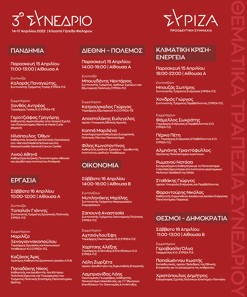 Όλες οι εργασίες του συνεδρίου θα μεταδίδονται με livestreaming από το https://synedrio.syriza.gr/