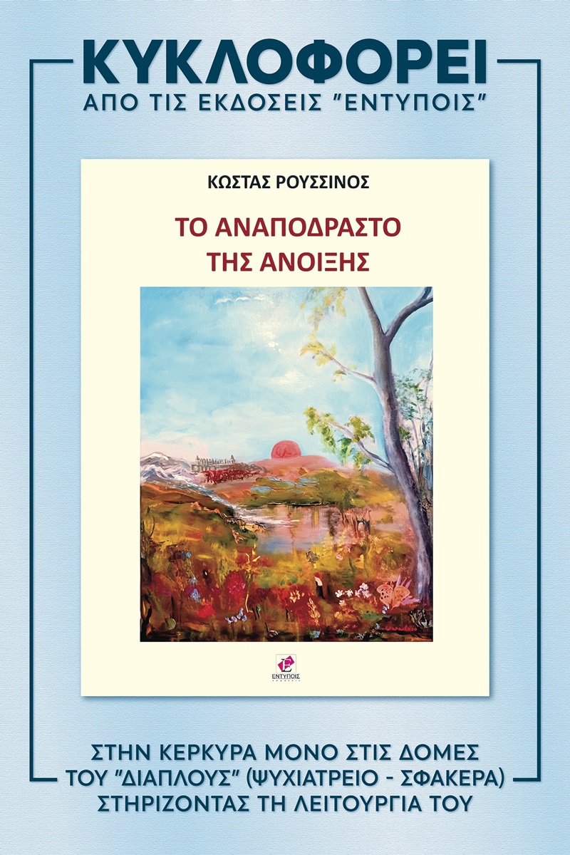 Σε δύο πολυπληθείς εκδηλώσεις, η πρώτη στις Νυμφές το Σάββατο 9 Απριλίου και η δεύτερη στο Ιόνιο Πανεπιστήμιο την Κυριακή 10 Απριλίου παρουσιάστηκε από τον σύλλογο γονέων και φίλων «ΔΙΑΠΛΟΥΣ» το νέο ποιητικό έργο του Κώστα Ρούσσινου «Το αναπόδραστο της άνοιξης».