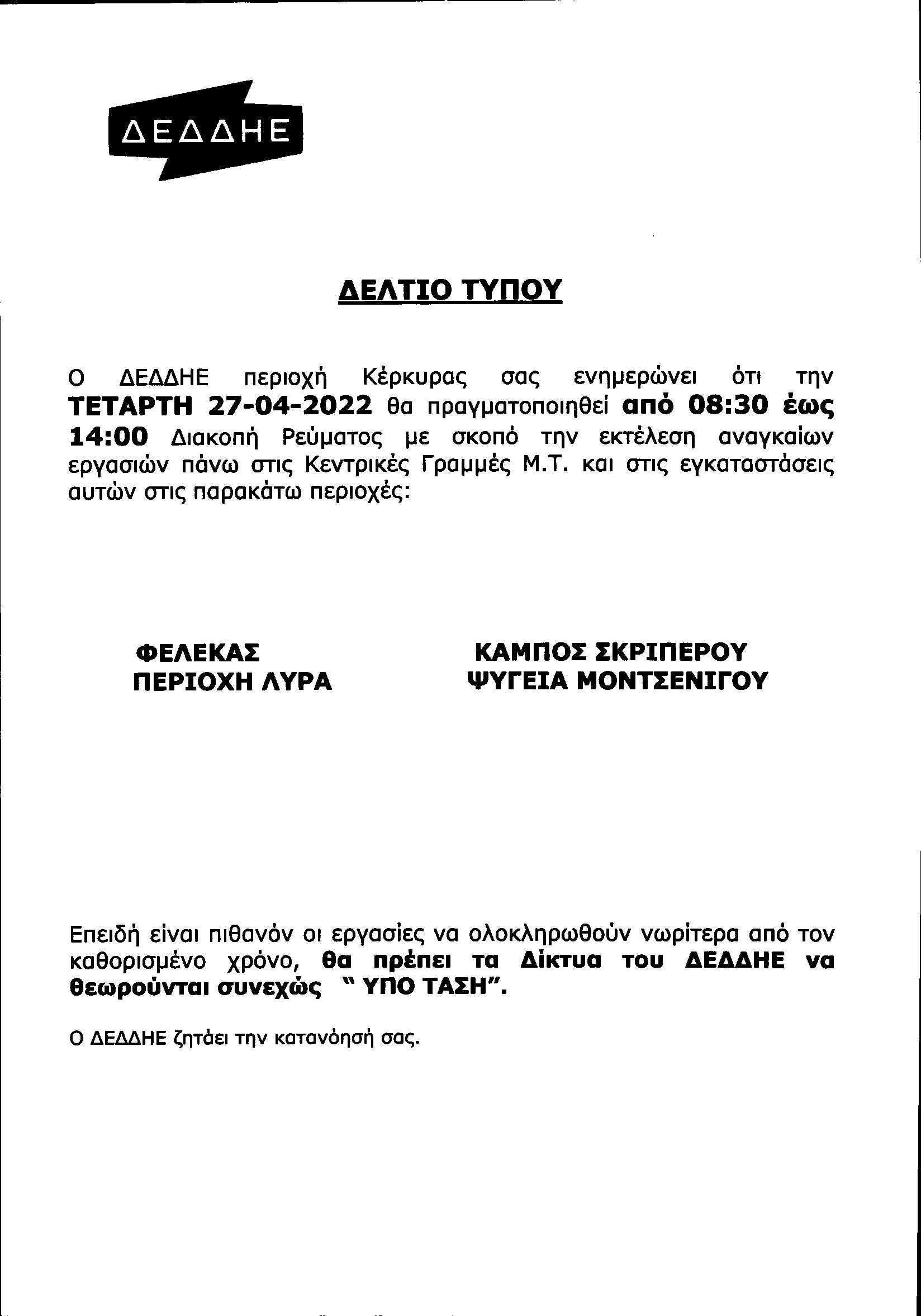 ΚΟΙΝΩΝΙΑΕΛΕΥΘΕΡΟΕΙΔΗΣΕΙΣ Διακοπή ρεύματος την επόμενη Τετάρτη Αιτία, οι εργασίες που θα πραγματοποιησει ο ΔΕΔΔΗΕ. Last updated: 21/04/2022 08:11 CorfuPress.com Published: 21/04/2022 Share SHARE Αιτία, οι εργασίες που θα πραγματοποιησει ο ΔΕΔΔΗΕ. Διακοπή ρεύματος τη Δευτέρα-Δείτε που Που θα γίνει διακοπή ρεύματος την Τετάρτη Που θα γίνει διακοπή ρεύματος την Τετάρτη Που θα γίνουν προγραμματισμένες διακοπές ρεύματος το διάστημα 23-25 Αυγούστου Έρχεται διακοπή ρεύματος στη Βόρεια Κέρκυρα Share This Article Facebook Whatsapp Whatsapp Email Copy Link Print Previous Article Θηλυκή σπείρα έκλεβε ρούχα από καταστήματα της Κέρκυρας Next Article Στοίχημα: Με το μομέντουμ και το κίνητρο της Κάντιθ Δεν υπάρχουν Σχόλια Δεν υπάρχουν Σχόλια Αφήστε μια απάντηση Ακύρωση απάντησηςΗ ηλ. διεύθυνση σας δεν δημοσιεύεται. Τα υποχρεωτικά πεδία σημειώνονται με *Σχόλιο * Όνομα * Email * Ιστότοπος Αποθήκευσε το όνομά μου, email, και τον ιστότοπο μου σε αυτόν τον πλοηγό για την επόμενη φορά που θα σχολιάσω. ΑναζήτησηΑναζήτησηRecent PostsΌλα τα μάτια στον Θοδωρή, τον καπετάνιο μας! Τη Δευτέρα 22 Σεπτεμβρίου γιορτάζει… Σαν Σήμερα 22/9: Τα σημαντικότερα γεγονότα… Η πρόγνωση του καιρού Έφηβοι Ιονίου: Με περίπατο, συνεχίζουν στο Rising Stars! Recent CommentsΧωρίς σχόλια για εμφάνιση.