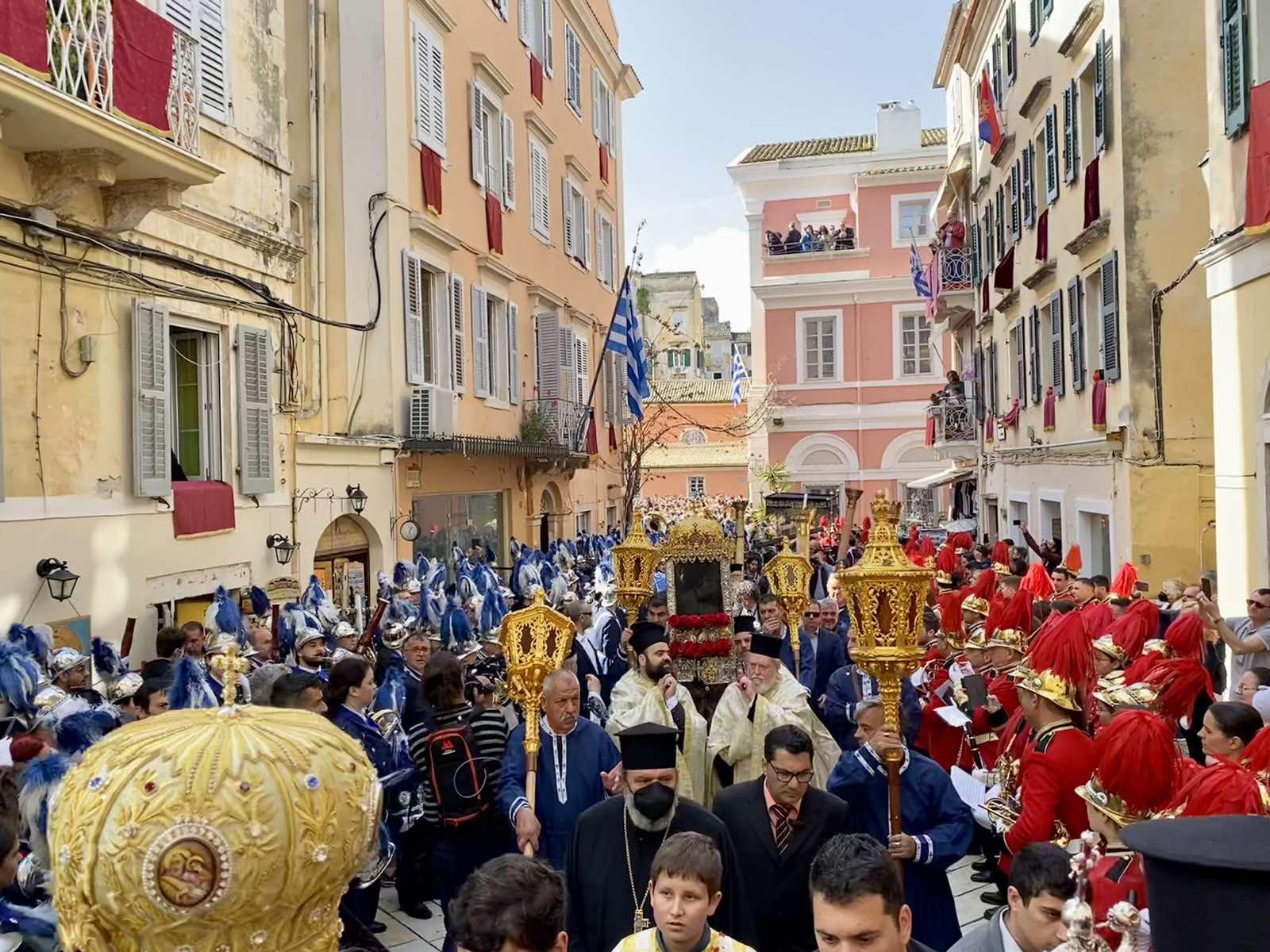 Την Μεγάλη Παρασκευή, μετά την αποκαθήλωση, στην Κέρκυρα συνηθίζεται η κάθε μια ενορία, να λιτανεύει τον επιτάφιο, αρχής γενομένης από 2ας μεταμεσημβρινής ώρας έως την 10ην εσπερινήν, που λιτανεύεται ο τελευταίος επιτάφιος του Μητροπολιτικού Ναού.
