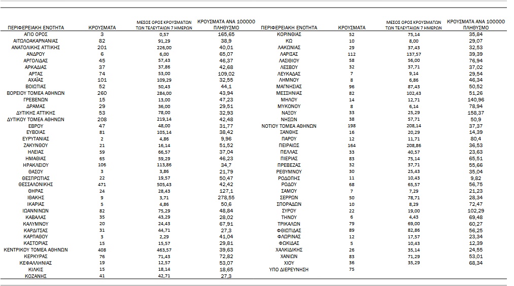 Αναλυτικά, η διασπορά των νέων κρουσμάτων ανά περιφερειακή ενότητα: