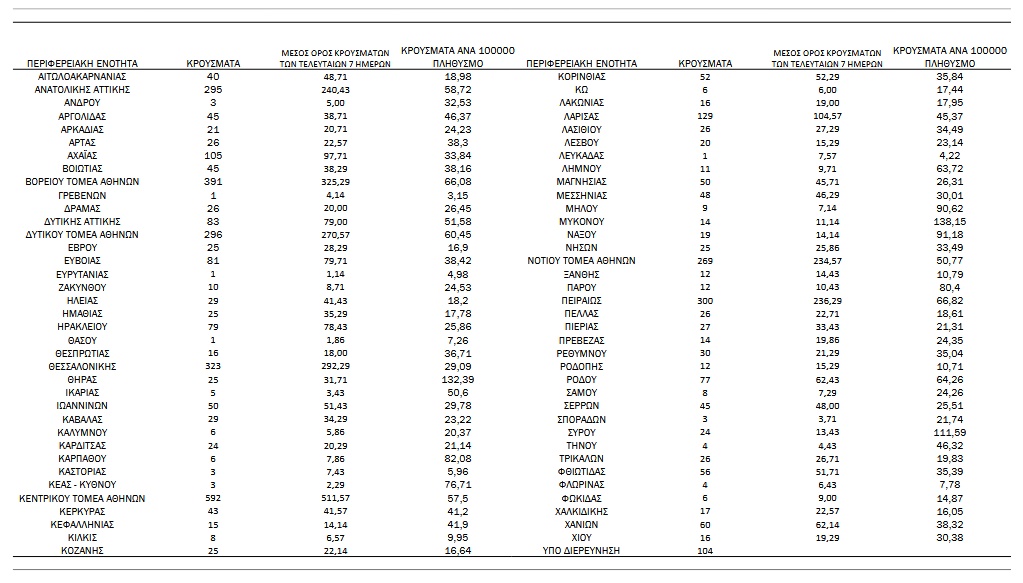 Αναλυτικά, η διασπορά των νέων κρουσμάτων ανά περιφερειακή ενότητα: