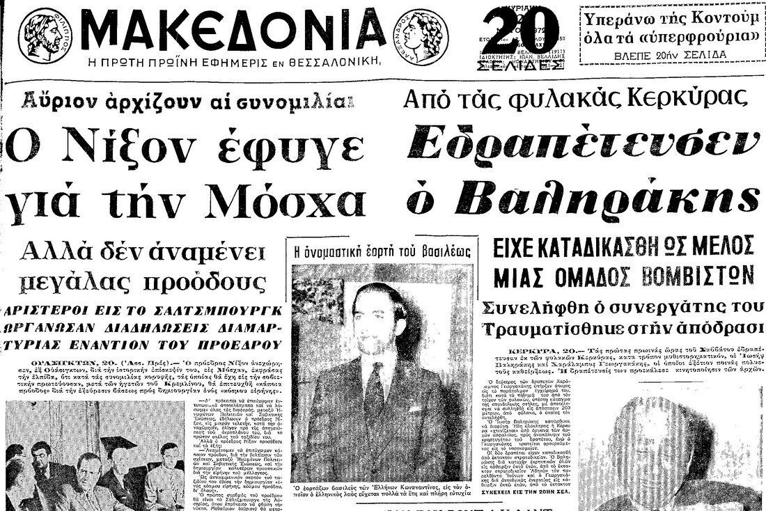 Οι Κυριακάτικες εφημερίδες της 21ης Μαΐου 1972 έκλειναν βιαστικά την ύλη τους το πρωί του Σαββάτου. Τα πολυσέλιδα της Κυριακής απαιτούσαν πολύωρη προετοιμασία. Θέματα υπήρχαν. Ο πρόεδρος των ΗΠΑ Ρίτσαρντ Νίξον ετοιμαζόταν να πάει στη Μόσχα για να συναντήσει τον Λεονίτ Μπρέσνιεφ ενώ υπήρχε και η απαραίτητη αναφορά στη γιορτή του Βασιλιά Κωνσταντίνου που μπορεί να ήταν εξόριστος, αλλά παρέμενε, τυπικά στο θρόνο του. Τη ρουτίνα της εργασίας διέκοψε η είδηση βόμβα. Απόδραση πολιτικού κρατούμενου από τις φυλακές της Κέρκυρας!