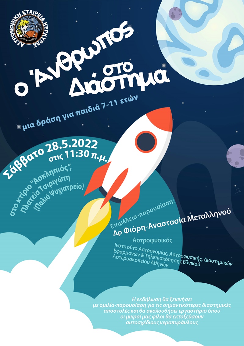 Η Αστρονομική Εταιρεία Κέρκυρας διοργανώνει δράση για παιδιά 7-11 ετών, με τίτλο “Ο Άνθρωπος στο Διάστημα”.