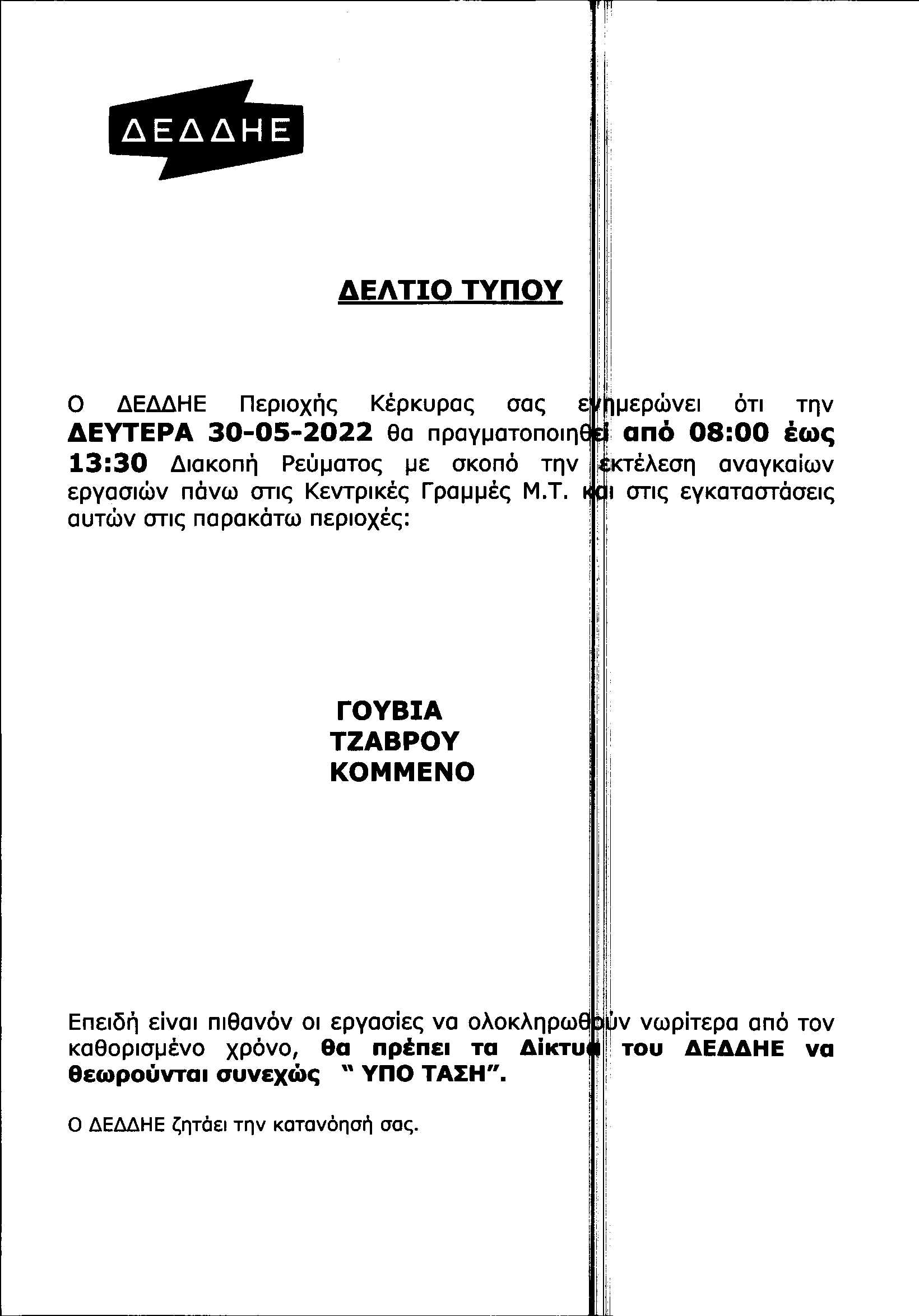 ΚΟΙΝΩΝΙΑΕΛΕΥΘΕΡΟΕΙΔΗΣΕΙΣ Διακοπή ρεύματος σε Κομμένο, Τζάβρου, Γουβιά Η διακοπή θα πραγματοποιηθεί όλο το πρωί της Δευτέρας λόγω εργασιών του ΔΕΔΔΗΕ. Last updated: 27/05/2022 10:18 CorfuPress.com Published: 27/05/2022 Share SHARE Η διακοπή θα πραγματοποιηθεί όλο το πρωί της Δευτέρας λόγω εργασιών του ΔΕΔΔΗΕ. Διακοπή ρεύματος τη Δευτέρα-Δείτε που Που θα γίνει διακοπή ρεύματος την Τετάρτη Που θα γίνει διακοπή ρεύματος την Τετάρτη Επιστολή Επιμελητηρίου προς ΔΕΔΔΗΕ για τις πολύωρες διακοπές ρεύματος Που θα γίνουν προγραμματισμένες διακοπές ρεύματος το διάστημα 23-25 Αυγούστου Share This Article Facebook Whatsapp Whatsapp Email Copy Link Print Previous Article Το Ιόνιο Πανεπιστήμιο πρωτοπόρο σε θέματα διαφάνειας και λογοδοσίας Next Article Αυλωνίτης: Συμπαράσταση σε έναν αγώνα που ακουμπά στις ανάγκες της κοινωνίας για εργασία με αξιοπρέπεια Δεν υπάρχουν Σχόλια Δεν υπάρχουν Σχόλια Αφήστε μια απάντηση Ακύρωση απάντησηςΗ ηλ. διεύθυνση σας δεν δημοσιεύεται. Τα υποχρεωτικά πεδία σημειώνονται με *Σχόλιο * Όνομα * Email * Ιστότοπος Αποθήκευσε το όνομά μου, email, και τον ιστότοπο μου σε αυτόν τον πλοηγό για την επόμενη φορά που θα σχολιάσω. ΑναζήτησηΑναζήτησηRecent PostsΌλα τα μάτια στον Θοδωρή, τον καπετάνιο μας! Τη Δευτέρα 22 Σεπτεμβρίου γιορτάζει… Σαν Σήμερα 22/9: Τα σημαντικότερα γεγονότα… Η πρόγνωση του καιρού Έφηβοι Ιονίου: Με περίπατο, συνεχίζουν στο Rising Stars! Recent CommentsΧωρίς σχόλια για εμφάνιση.