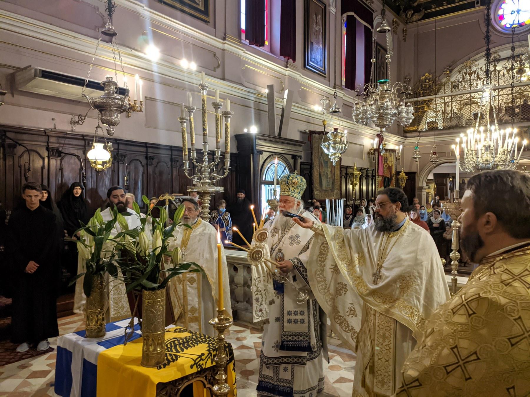 Στο τέλος ο Σεβασμιώτατος τέλεσε την επιμνημόσυνη δέηση για την ανάπαυση της ψυχής του τελευταίου αυτοκράτορα του Βυζαντίου, Κωνσταντίνου Παλαιολόγου αλλά και των χιλιάδων Ελλήνων – Ρωμιών οι οποίοι έπεσαν μαχόμενοι για την πίστη και την πατρίδα στα απόρθητα τείχη της Κωνσταντινούπολης, την αποφράδα ημέρα της 29ης Μαΐου 1453. Ο Σεβασμιώτατος κάλεσε τους εκκλησιαζόμενους να ενώσουν τις προσευχές τους, αλλά και να μην ξεχνάμε την ιστορία μας και την Βασιλεύουσα πόλη. Ο πρώτος πατριάρχης Γεννάδιος Σχολάριος, μετά την πτώση της Πόλης, ενεδύθει το έμβλημα το αυτοκρατορικό και ταυτόχρονα τον πατριαρχικόν-πνευματικό, τις δύο εξουσίες, ενσαρκώνοντας την παράδοση του γένους μας μέχρι και τον τελευταίο πατριάρχη κ. Βαρθολομαίον που έζησαν ως ελεύθεροι πολιορκημέν για να συνεχίσουν μέχρι και τις μέρες μας να μεταλαμπαδεύουν την ιστορία, τον θρύλον του Βυζαντίου και του πολιτισμού, διατηρώντας στην καρδιά της Ρωμιοσύνης « το πάλι με χρόνια με καιρούς πάλι δικά μας θα΄ ναι ».
