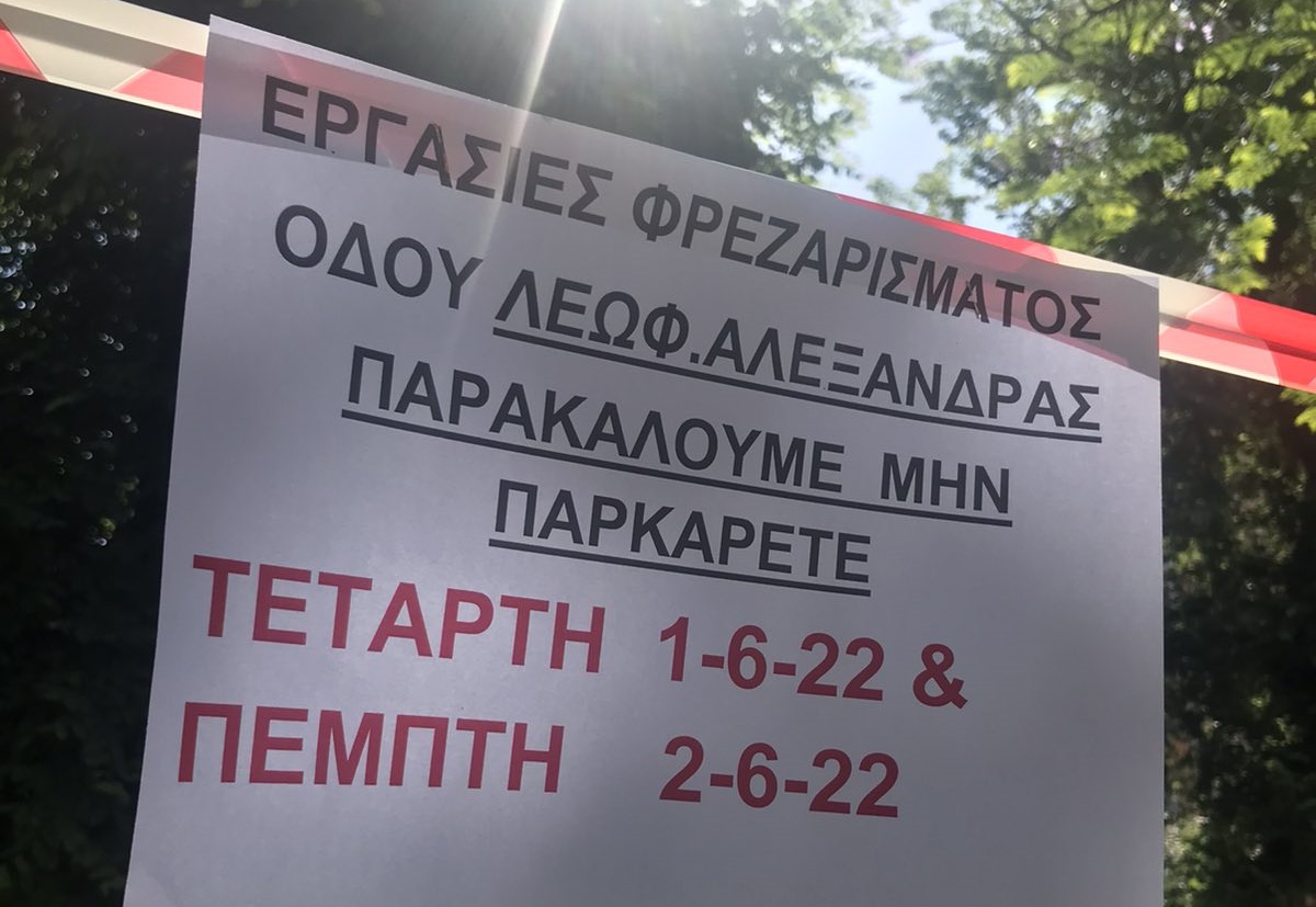Εργασίες φρεζαρίσματος θα πραγματοποιηθούν στο οδόστρωμα της Λεωφόρου Αλεξάνδρας την Τετάρτη και την Πέμπτη.
