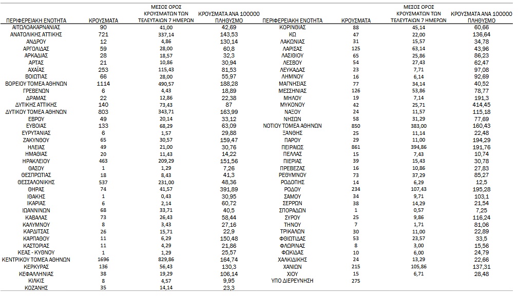 Αναλυτικά, η διασπορά των νέων κρουσμάτων ανά περιφερειακή ενότητα:
