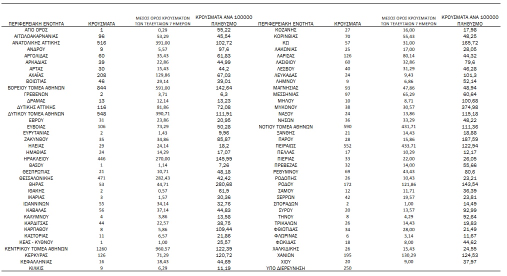 Αναλυτικά, η διασπορά των νέων κρουσμάτων ανά περιφερειακή ενότητα: