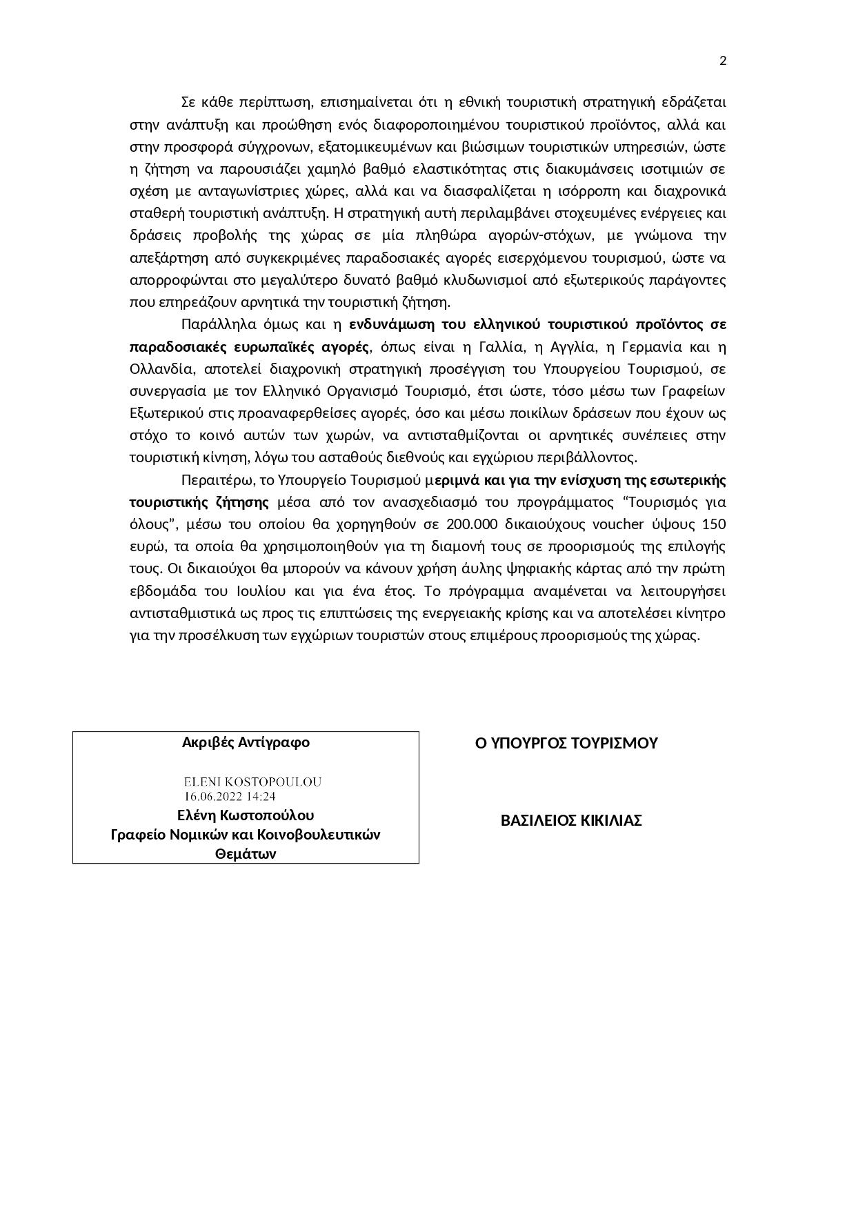 Ύστερα από την ερώτηση, μας απεστάλη η υπ’αριθμ. 1116 /2021 Απάντηση, την οποία υπογράφει ο Υπουργός Τουρισμού. Το Υπουργείο έριξε για άλλη μια φορά τις ευθύνες στις διεθνείς εξελίξεις και επέλεξε να κάνει μόνο γενικές αναφορές στο ότι επιθυμεί να στηρίξει (;;) το τουριστικό προϊόν της χώρας μας. Προτάσεις και παραδείγματα λύσεων υπάρχουν, ωστόσο η κυβέρνηση επιλέγει ως συνήθως την οδό της αδιαφορίας. Δυστυχώς, παραμένουν τα εύλογα ερωτηματικά για το πως θα αντιμετωπισθεί το πρόβλημα της ακρίβειας των καυσίμων στα νησιά, όπου οι υψηλές τιμές λειτουργούν αποτρεπτικά για την περαιτέρω τουριστική κίνηση ενώ αυξάνουν σημαντικά το καθημερινό κόστος ζωής για τους νησιώτες.