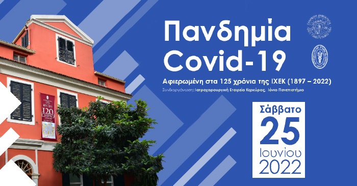 Η Ιατροχειρουργική Εταιρεία Κέρκυρας (ΙΧΕΚ) και το Ιόνιο Πανεπιστήμιο, στο πλαίσιο των εκδηλώσεων για τον εορτασμό των 125 χρόνων της ΙΧΕΚ, συνδιοργανώνουν ημερίδα με θέμα «Πανδημία Covid-19» στις 25 Ιουνίου στην Ιόνιο Ακαδημία.
