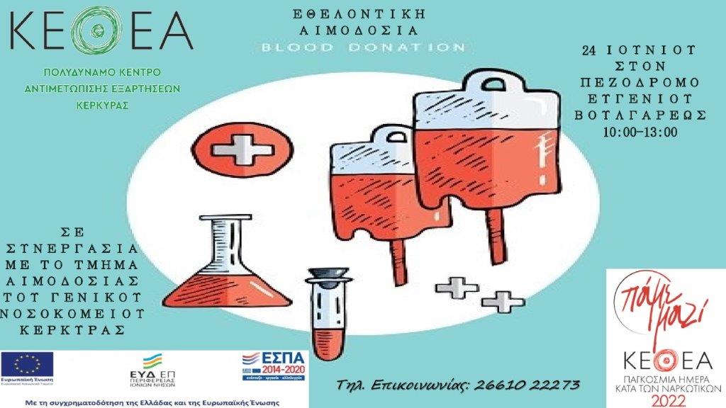 «Ανοιχτό Παράθυρο στη Ζωή» ελάτε να ζωγραφίσουμε παρέα την Παρασκευή 24 Ιουνίου μεταξύ 10.00 – 13.00 στο κιόσκι της Πάνω Πλατείας Κέρκυρας. Παράλληλα θα πραγματοποιηθεί Εθελοντική Αιμοδοσία σε συνεργασία με το Τμήμα Αιμοδοσίας του Γενικού Νοσοκομείου Κέρκυρας στο πεζόδρομο Ευγενίου Βουλγάρεως.