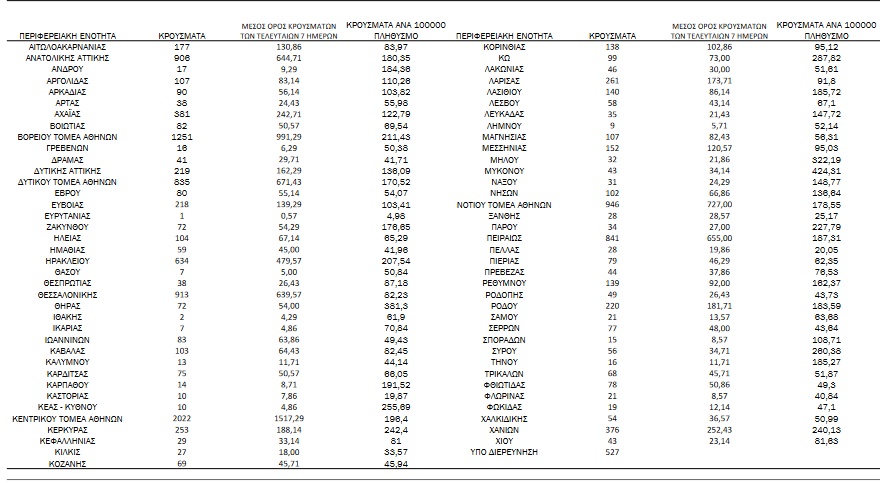 Αναλυτικά, η διασπορά των νέων κρουσμάτων ανά περιφερειακή ενότητα: