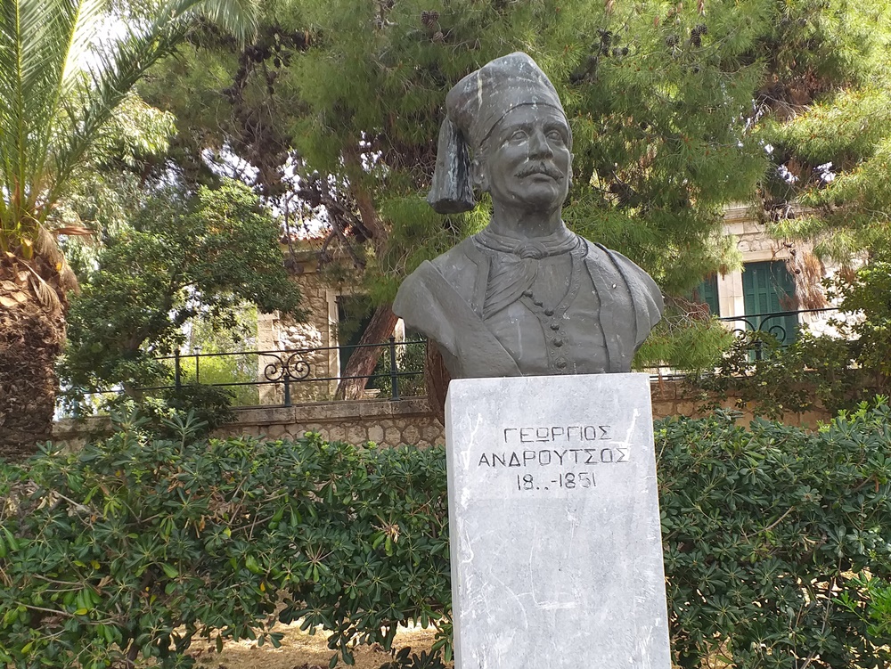Προχωρώντας προς τα δυτικά, στην ίδια ευθεία, συναντούμε σε απόσταση λίγων μέτρων την προτομή του Γεώργιου Ανδρούτσου (περ. Σπέτσες 1782-1849/1851), επίσης Σπετσιώτη ναυμάχου και ναυάρχου με σημαντική συμβολή