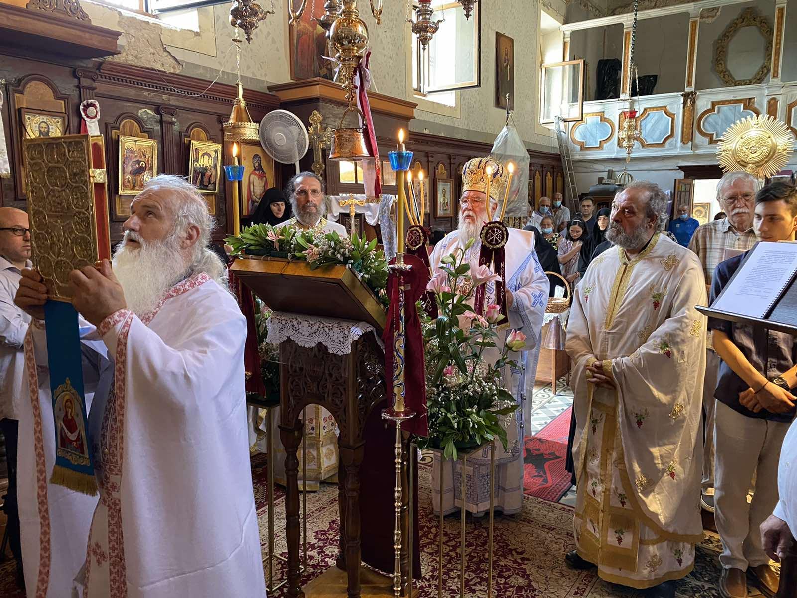 Κατά την θεία λειτουργία ο Σεβασμιώτατος απευθυνόμενος στους ευλαβείς προσκυνητές της ιεράς μονής, πρώτον υπογράμμισε το ιστορικόν της κατάθεσης της Τιμίας Εσθήτος από τον αυτοκράτορα στην νεοιδρυθείσα τότε Ιερά Μονή της Θεομήτορος, στις Βλαχέρναις της Κωνσταντινουπόλεως. Δευτερόν· επεσήμανε τον ρόλο της Παναγίας μας στην σάρκωση του Υιού και Λόγου του Θεού και την συμβολή της, στην σωτηρία του ανθρωπίνου γένους.