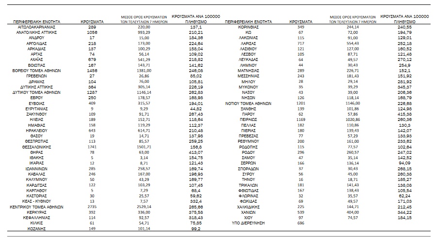 Αναλυτικά, η διασπορά των νέων κρουσμάτων ανά περιφερειακή ενότητα: