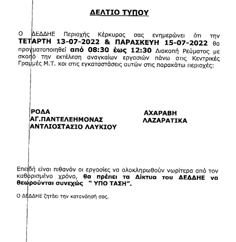 ΚΟΙΝΩΝΙΑΕΛΕΥΘΕΡΟΕΙΔΗΣΕΙΣ Διακοπή ρεύματος Τετάρτη & Παρασκευή στη βόρεια Κέρκυρα Νέες διακοπές ρεύματος στη βόρεια Κέρκυρα την προσεχή Τετάρτη λόγω εργασιών του ΔΕΔΔΗΕ. Last updated: 11/07/2022 14:54 CorfuPress.com Published: 11/07/2022 Share SHARE Νέες διακοπές ρεύματος στη βόρεια Κέρκυρα την προσεχή Τετάρτη λόγω εργασιών του ΔΕΔΔΗΕ. Διακοπή ρεύματος τη Δευτέρα-Δείτε που Που θα γίνει διακοπή ρεύματος την Τετάρτη Που θα γίνει διακοπή ρεύματος την Τετάρτη Που θα γίνουν προγραμματισμένες διακοπές ρεύματος το διάστημα 23-25 Αυγούστου Έρχεται διακοπή ρεύματος στη Βόρεια Κέρκυρα Share This Article Facebook Whatsapp Whatsapp Email Copy Link Print Previous Article Ψήφισμα του ΔΣ Κεντρικής Κέρκυρας για το χαμό του Σταύρου Σαββανή Next Article Ερώτηση (και) Αυλωνίτη για τις επιστρεπτέες προκαταβολές Δεν υπάρχουν Σχόλια Δεν υπάρχουν Σχόλια Αφήστε μια απάντηση Ακύρωση απάντησηςΗ ηλ. διεύθυνση σας δεν δημοσιεύεται. Τα υποχρεωτικά πεδία σημειώνονται με *Σχόλιο * Όνομα * Email * Ιστότοπος Αποθήκευσε το όνομά μου, email, και τον ιστότοπο μου σε αυτόν τον πλοηγό για την επόμενη φορά που θα σχολιάσω. ΑναζήτησηΑναζήτησηRecent PostsΌλα τα μάτια στον Θοδωρή, τον καπετάνιο μας! Τη Δευτέρα 22 Σεπτεμβρίου γιορτάζει… Σαν Σήμερα 22/9: Τα σημαντικότερα γεγονότα… Η πρόγνωση του καιρού Έφηβοι Ιονίου: Με περίπατο, συνεχίζουν στο Rising Stars! Recent CommentsΧωρίς σχόλια για εμφάνιση.