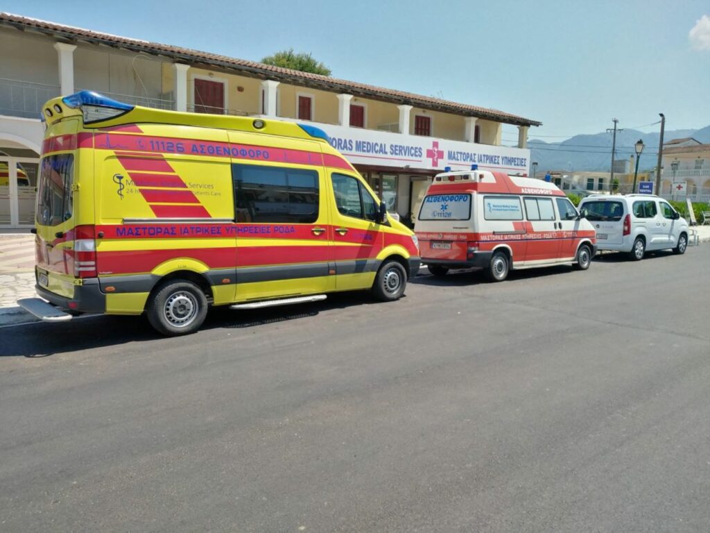 (α) Στο Ιδιωτικό Κέντρο Υγείας στη Ρόδα με 24ωρη εφημερία, Ορθοπεδικό γιατρό, γενικό ιατρό εφημερίας , μικροβιολογικές και ακτινολογικές εξετάσεις και δύο (02) ασθενοφόρα.