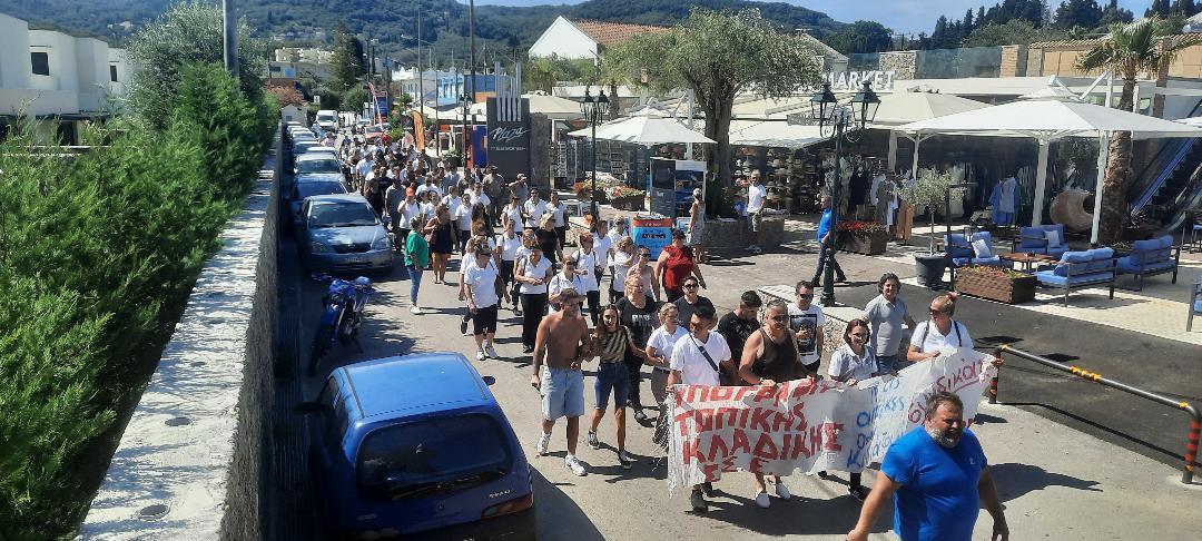 Στην συνέχεια οι συγκεντρωμένοι εργαζόμενοι από τα τρία ξενοδοχεία , κινήθηκαν με αυτοκινητοπομπή προς την περιοχή της Μεσογγής και πραγματοποίησαν πορεία έξω από τα ξενοδοχεία APOLLO PALACE, OLIVAR, GEMINI και MYTHOS, διεκδικώντας υπογραφή τοπικής Συλλογικής Σύμβασης Εργασίας με πραγματικές αυξήσεις στους μισθούς.