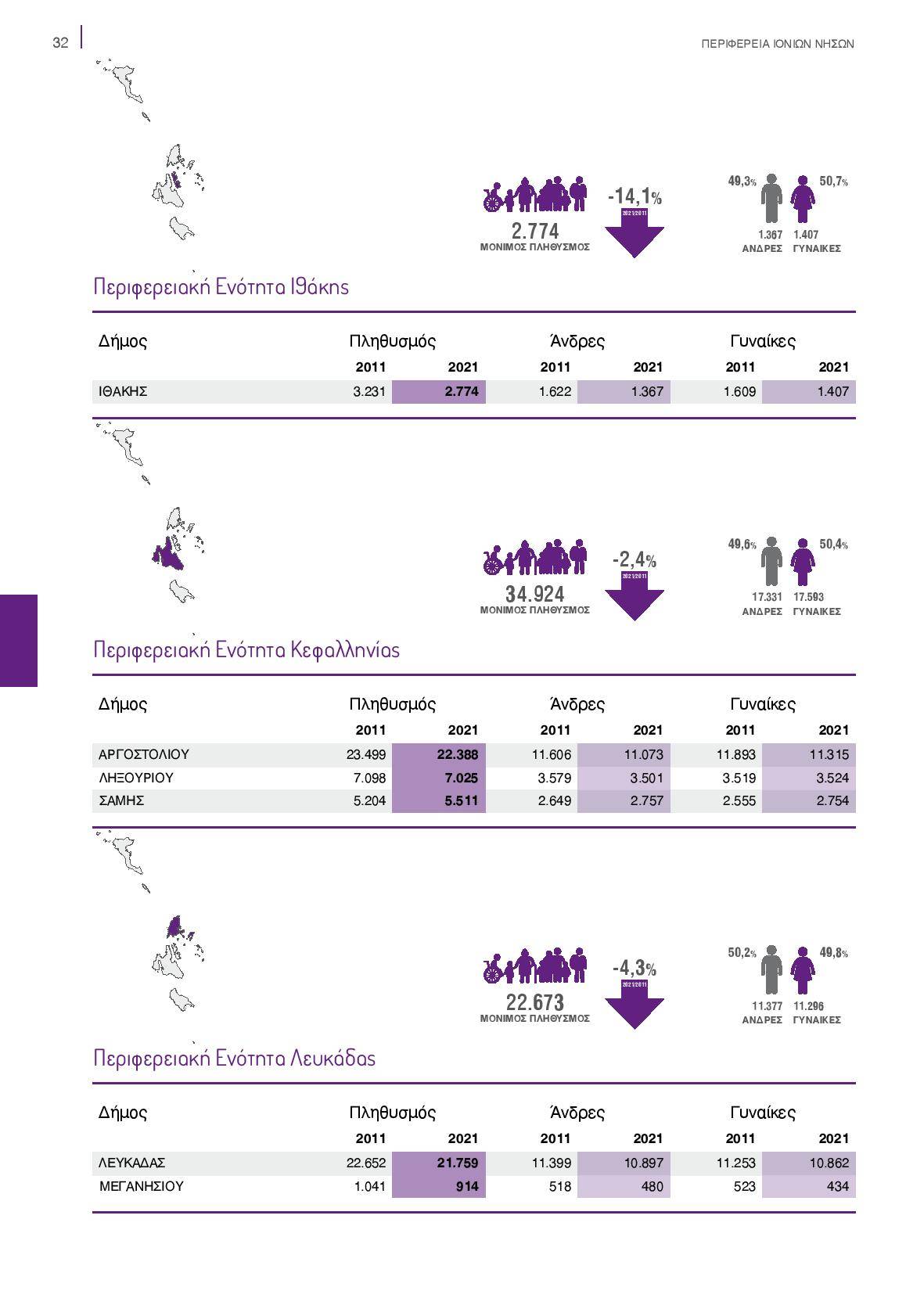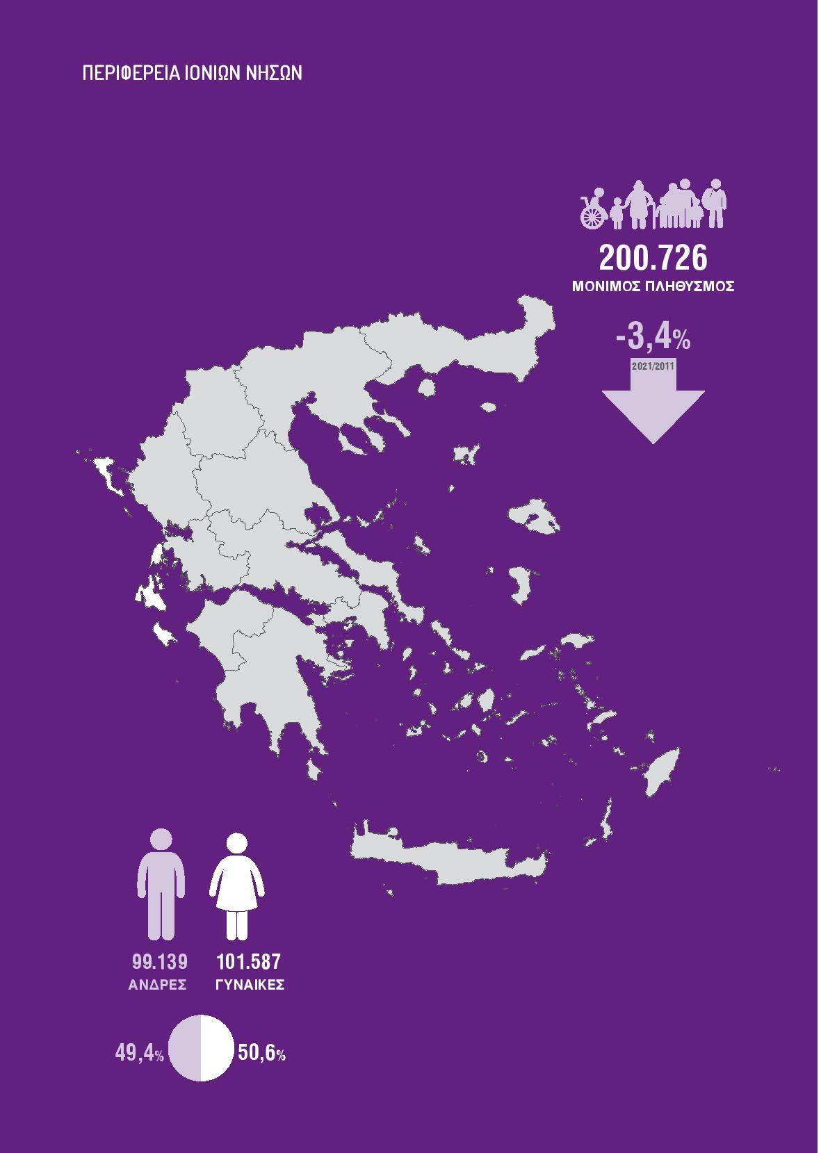 Τα Ιόνια Νησιά έχουν σήμερα 200.726 κατοίκους από τους 214.773 που είχε πριν από 10 χρόνια, ενώ, πλέον, η Κέρκυρα μαζί με τους Παξούς έχουν 99.847 μόνιμους κατοίκους.