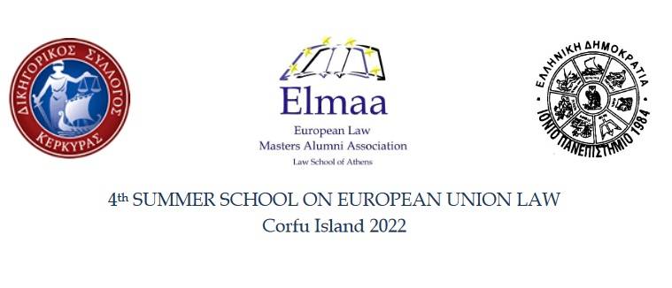Ο Ερευνητικός Σύλλογος Αποφοίτων ΠΜΣ Ευρωπαϊκού Δικαίου της Νομικής Σχολής Αθηνών (ELMAA), ο Δικηγορικός Σύλλογος Κέρκυρας και το Ιόνιο Πανεπιστήμιο διοργανώνουν την Τελετή Έναρξης του “4th Summer School on European Union Law, Corfu 2022”.