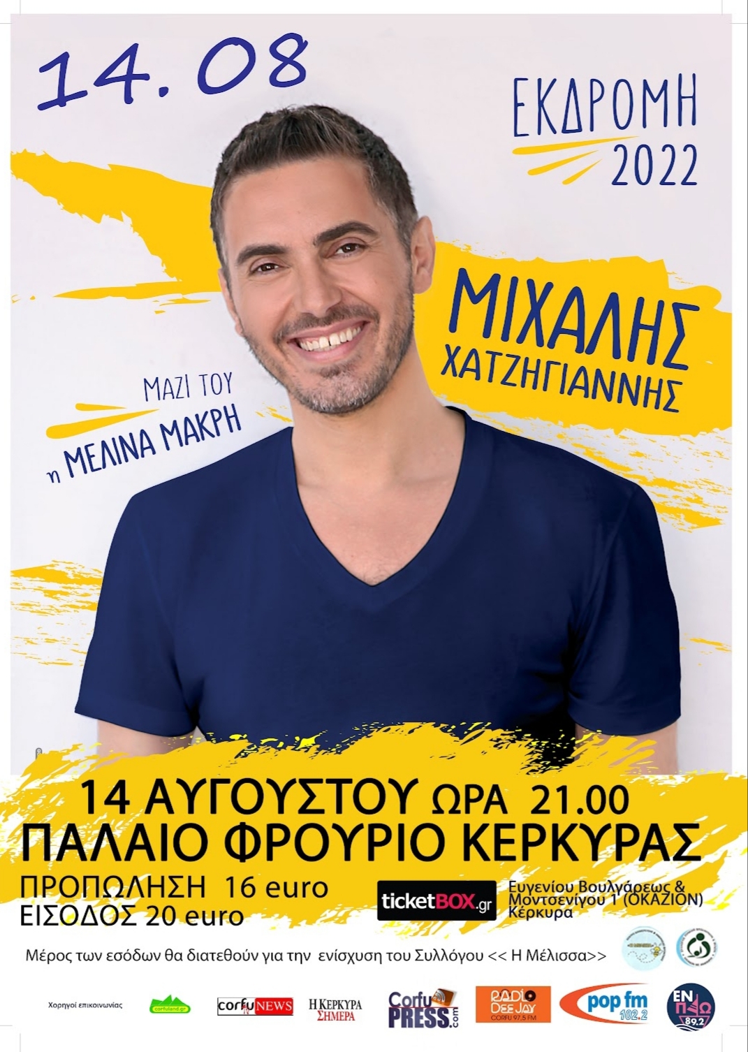 Info: Προπώληση εισιτηρίων ηλεκτρονικά στο ticketbox.gr και στο φυσικό σημείο Ευγενίου Βουλγάρεως και Μοντσενίγου 1 , Κέρκυρα. Τιμή προπώλησης 16 ευρώ, στην είσοδο 20 ευρώ.