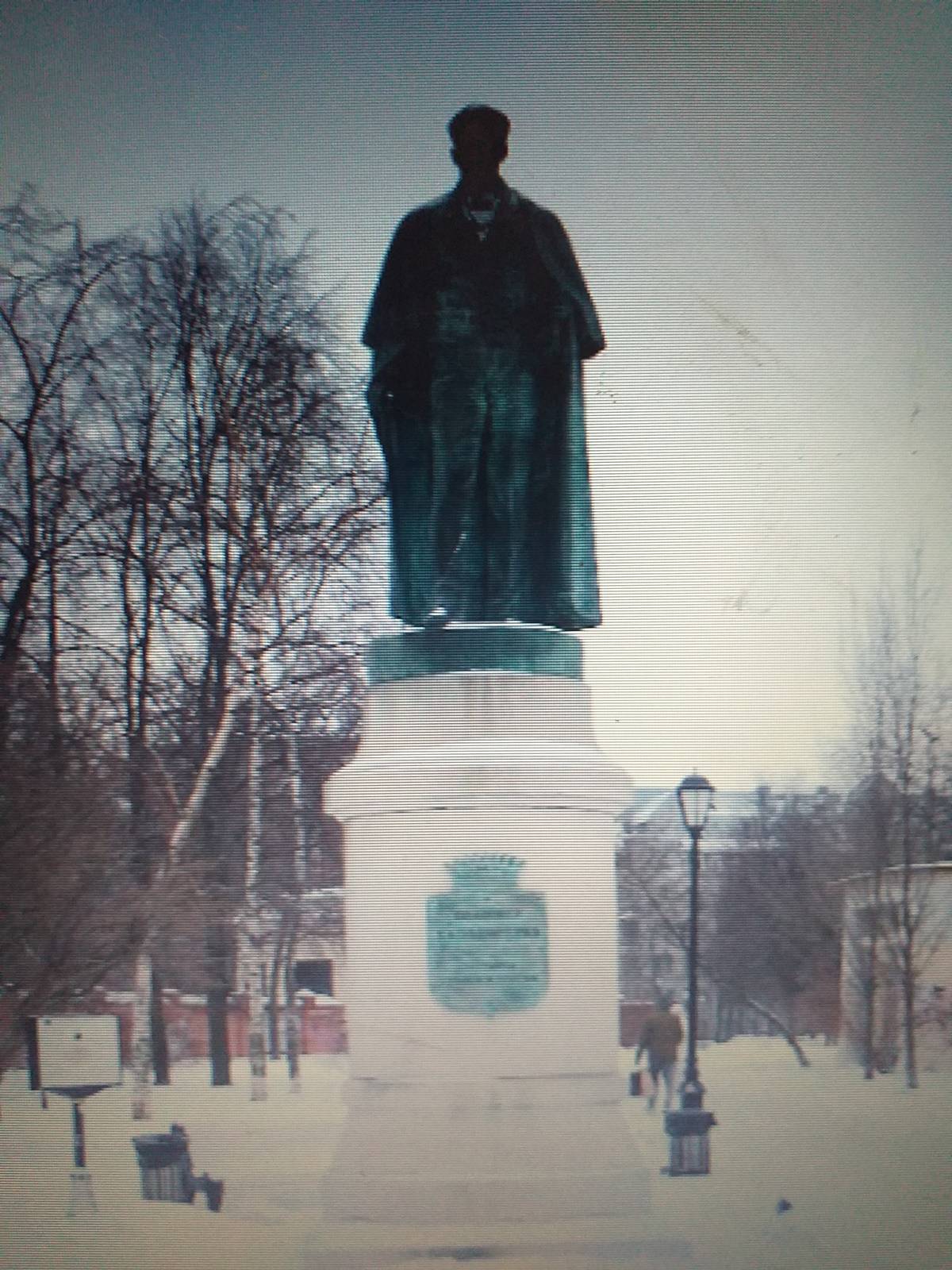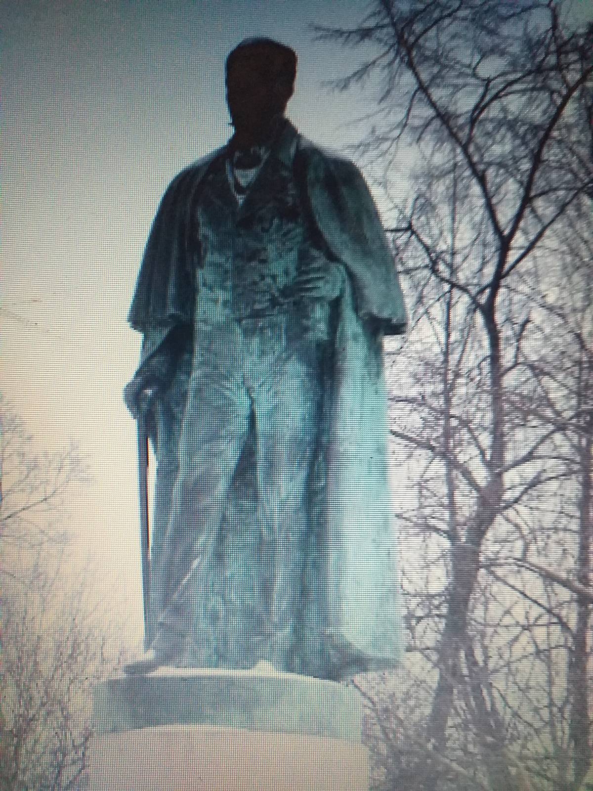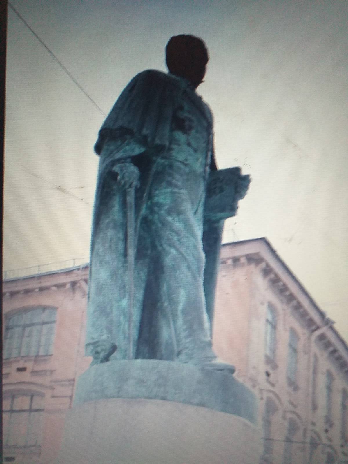 ( 19.10.1939 – 2.6.2006 ) και συνιστά σε χρονολογικό επίπεδο τη νεότερη εκείνη της σειράς με σχετικό θέμα. H πρωτοβουλία της ανέγερσης του έργου ανήκει στην Ομοσπονδία Ελληνικών Κοινοτήτων Ρωσίας, επί προεδρίας του κ. Β. Γ. Κάισεβ, η οποία αναλαμβάνει εξ ολοκλήρου τη σχετική δαπάνη και το δωρίζει στην πόλη της Αγίας Πετρούπολης με αφορμή την επέτειο των τριακοσίων χρόνων από την ίδρυση της από το Μεγάλο Πέτρο. Το γλυπτό τοποθετείται ,την ίδια χρονιά, στην Ελληνική Πλατεία που βρίσκεται στη Λεωφόρο των Ελλήνων, δίπλα στην αίθουσα συναυλιών ” Οκτιάμπρσκι ” στο σημείο ακριβώς όπου παλιά βρισκόταν έως το 1964, οπότε κατεδαφίστηκε, ο ελληνικός ορθόδοξος ναός του Αγίου Δημητρίου Θεσσαλονίκης,.και αποκαλύπτεται στις 29 Μαΐου, στο πλαίσιο των σχετικών εορτασμών της πόλης, με παρουσία, μεταξύ άλλων, του τότε πρωθυπουργού της Ελλάδας Κώστα Σημίτη, της Κυβερνήτη της Αγίας Πετρούπολης, Βαλεντίνας Ματβιένκο και του πρεσβευτή της Ελλάδας στη Μόσχα, Κου Δημήτρη Παρασκευόπουλου.