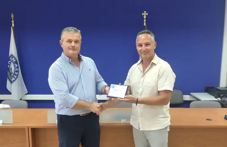 Ο Πρόεδρος της Ένωσης Επαμεινώνδας Κατωπόδης του απένειμε τιμητική πλακέτα για τις μακροχρόνιες και εξαιρετικές υπηρεσίες που έχει προσφέρει από τη θέση του ως Πρόεδρος, την οποία υπηρέτησε με επιτυχία, εντιμότητα, αφοσίωση και αυταπάρνηση, καθώς και για την πολύπλευρη συνεισφορά του στην κοινωνία, ιδιαίτερα της Κέρκυρας, από τα καθήκοντα του ως Αξιωματικός.