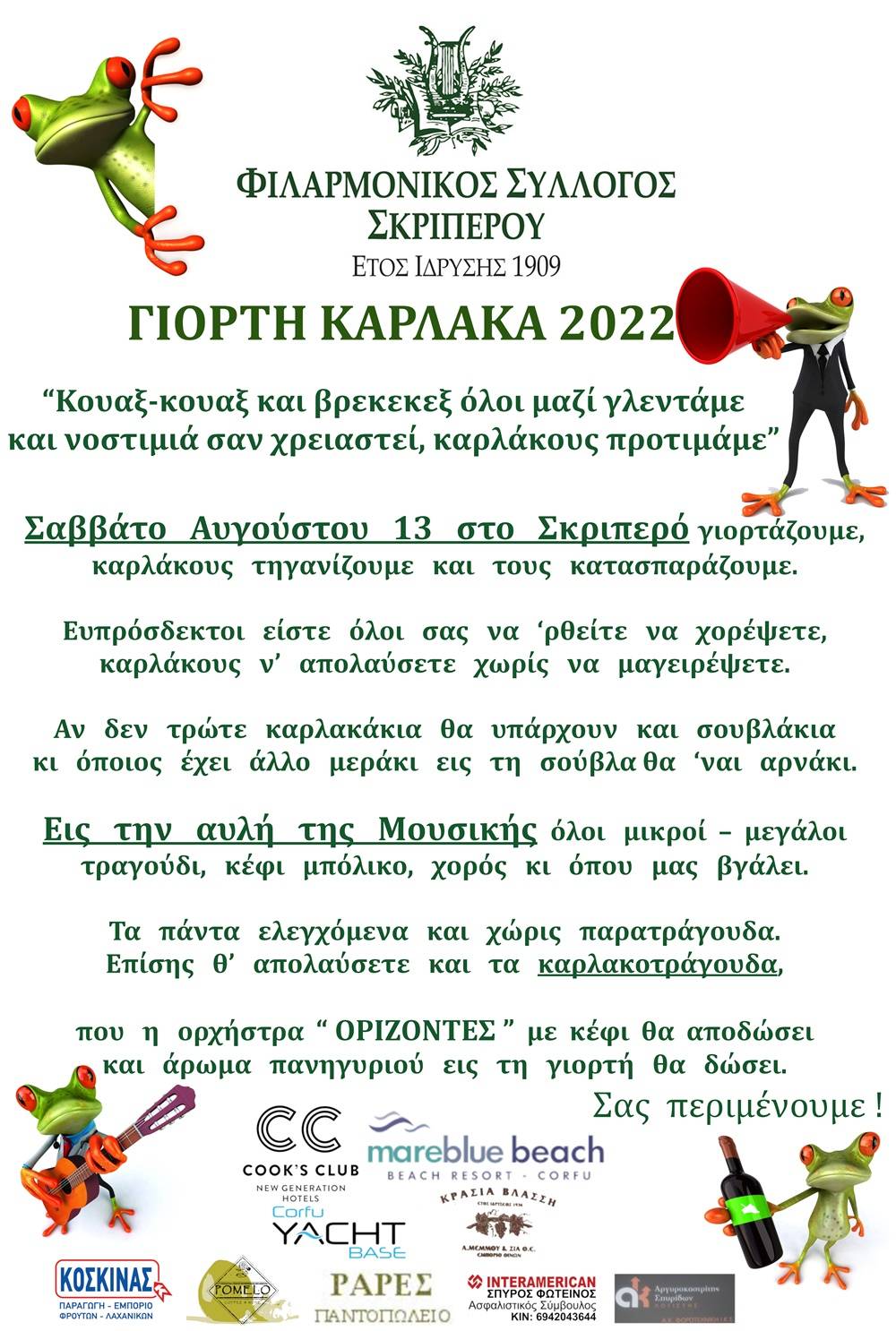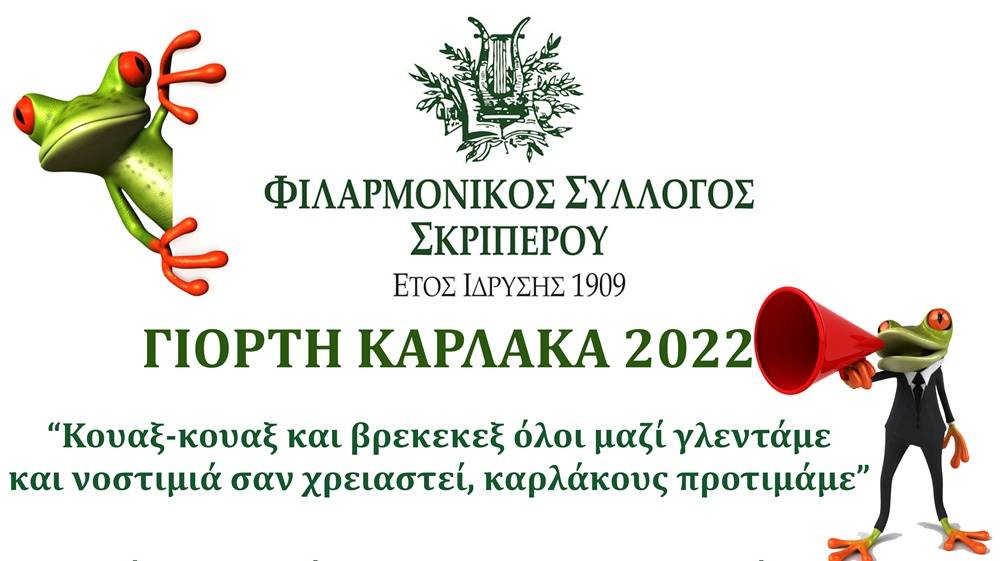 Το Σάββατο 13ης Αυγούστου θα πραγματοποιηθεί η Γιορτή Κάρλακα στο προαύλιο χώρο του Φιλαρμονικού Συλλόγου Σκριπερού.