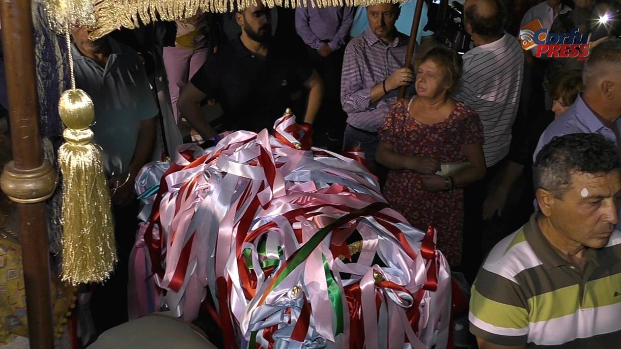 Ο επιτάφιος ήταν στολισμένος με εκατοντάδες κορδέλες που, μετά από 40 ημέρες σύμφωνα με το έθιμο, οι πιστοι θα τις πάρουν σπίτι τους για την καλή τύχη όλης της χρονιάς…