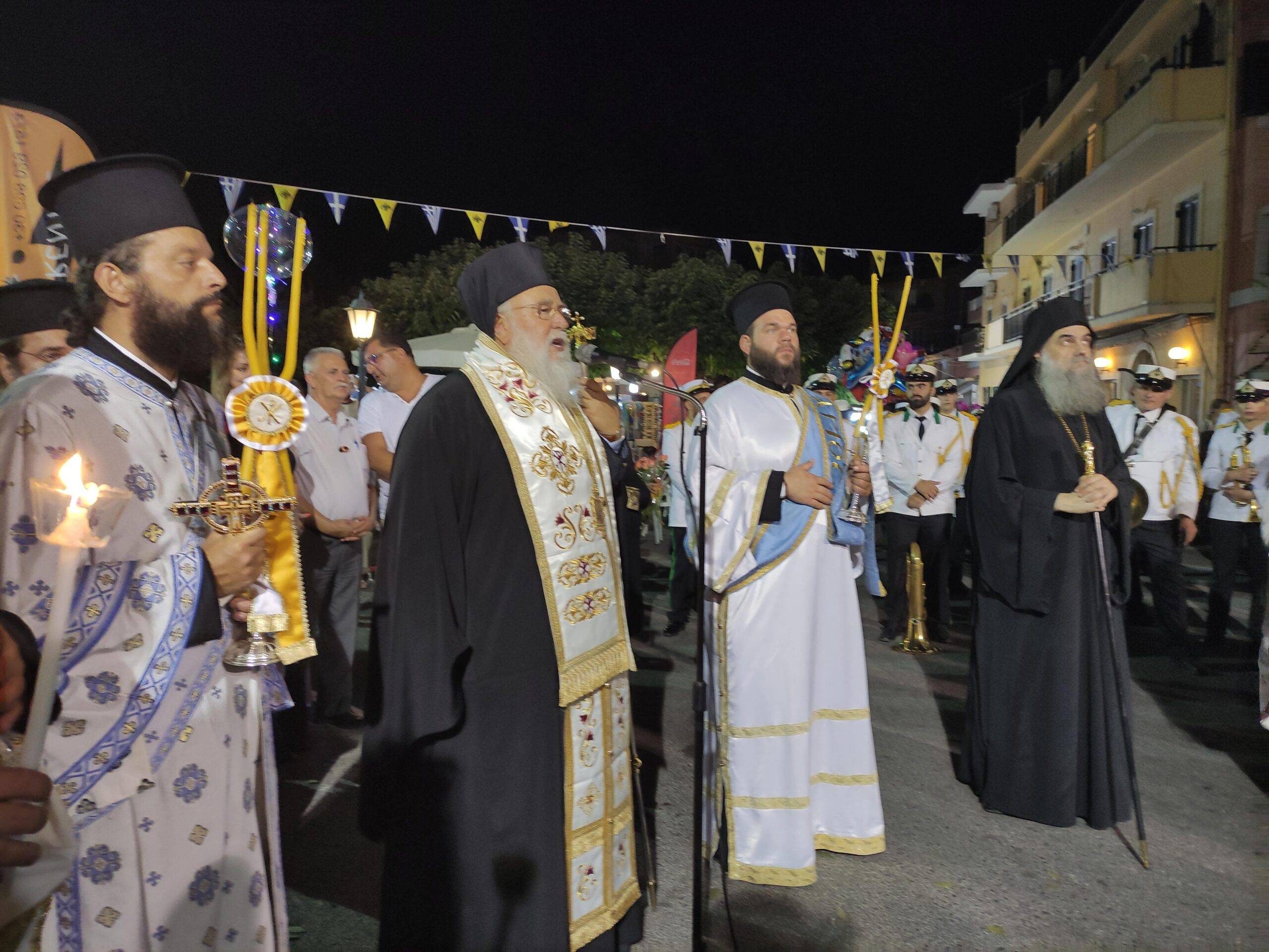 Ο Σεβασμιώτατος Μητροπολίτης Κερκύρας Παξών & Διαποντίων νήσων κ. Νεκτάριος στον εσπερινό της εορτής χοροστάτησε και προέστη της μεγαλειώδους λιτανείας και ομίλησε κατ’ αυτήν, στο ιστορικό χωριό του Πέλεκα στην μέση Κέρκυρα, πλαισιούμενος από τον καταγόμενο εκ Κερκύρας, αρχιμανδρίτη π. Μεθόδιο Κρητικό και μερικούς πατέρες από την συνοδεία του, ο οποίος είναι ηγούμενος και ιδρυτής της Ιεράς Μονής του Αναστάντος Χριστού, στην Ιερά Μητρόπολη Πειραιώς. Επίσης και ο ηγούμενος της Ιεράς Μονής Παλαιοκαστρίτσας π. Σωσίπατρος Ασπιώτης μετά της συνοδείας του, καθώς και αρκετοί ιερείς της Κέρκυρας. Στο τέλος της ιεράς λιτάνευσης στην πλατεία του χωριού απηύθυνε χαιρετισμό και εγκωμιαστικόν λόγον για την Υπεραγία Θεοτόκον. Η συμμετοχή των ανθρώπων όχι μόνο των τοπικών αρχόντων και του λαού της ενορίας, αλλά πολλών ελλήνων παραθεριστών οι οποίοι συμμετείχαν με ευλάβεια και κατάνυξη ήταν μεγαλειώδης.