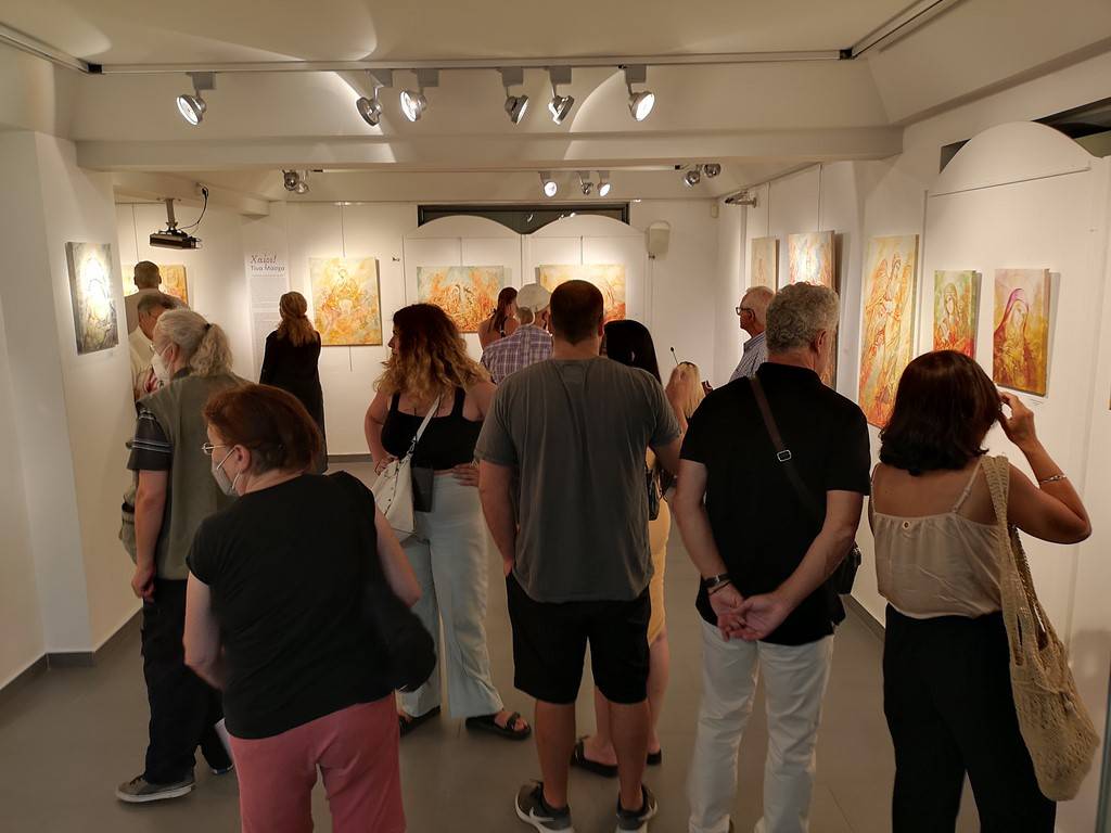 Με επιτυχία εγκαινιάστηκε την Τετάρτη η έκθεση «Χαίρε!», της εικαστικού Τίνας Μάσχα, στην Αίθουσα Περιοδικών Εκθέσεων της Κερκυραϊκής Πινακοθήκης. Τα έργα της εικαστικού αποτελούν μια ιδιαίτερη προσέγγιση στην τέχνη της αγιογραφίας και παρουσιάζονται για πρώτη φορά στο κοινό. Η έκθεση είναι ένας Ύμνος στην Μεγάλη Μάνα, Την Κυρά Παναγιά. Για την σειρά «Χαίρε!» και την επαγγελματική της πορεία μίλησε η ίδια η εικαστικός, δίνοντας στο κοινό την ευκαιρία να γνωρίσει καλύτερα το έργο της.