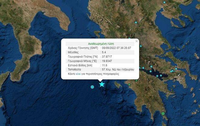 Ισχυρός σεισμός 5,4 Ρίχτερ σημειώθηκε λίγο μετά τις 10.30 το πρωί ανοιχτά της Κεφαλονιάς. Ιδιαίτερα αισθητός σε Ζάκυνθο και Λευκάδα.