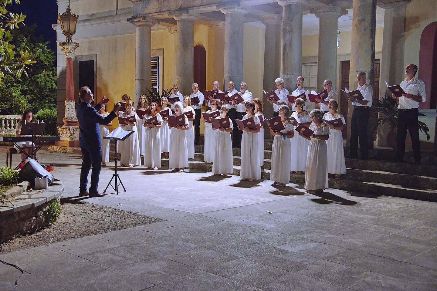 Στη φωτογραφία, η Χορωδία Ανεμόμυλου “Θωμας Φλαγγινης” στις πρόβες της για τη συναυλία, εδώ μπροστά από το Μον Ρεπό!