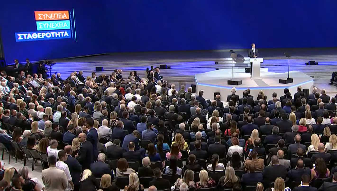 Στον καθαρά προεκλογική του ομιλία έκανε αναφορά στα τρία χρόνια διακυβέρνησης της χώρας από τη Νέα Δημοκρατία και δεν έκρυψε τον αυτοθαυμασμό του για τα «οικονομικά επιτεύγματα» των τελευταίων ετών. «Ύστερα από τρία χρόνια, αυτά που είπαμε έγιναν και γίνονται».