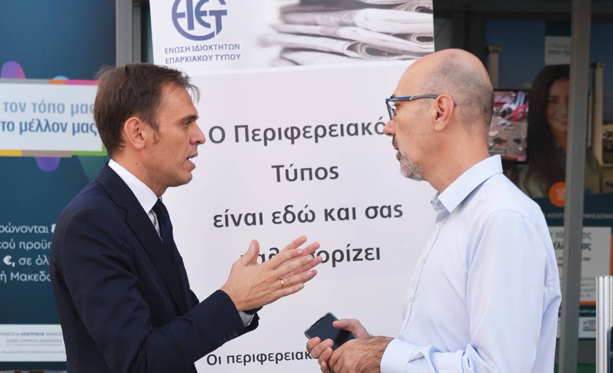 Παράλληλα, ζήτησε περαιτέρω ενημέρωση σε άμεση συνάντηση, ενώ υποσχέθηκε να διατηρηθεί ανοιχτός ο δίαυλος επικοινωνίας με την Ε.Ι.Ε.Τ. για ότι θέματα απασχολούν τις εβδομαδιαίες περιφερειακές εφημερίδες.