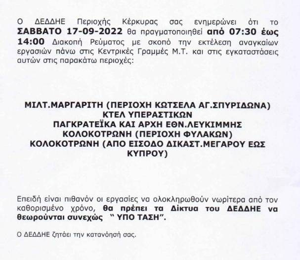 ΚΟΙΝΩΝΙΑΕΛΕΥΘΕΡΟΕΙΔΗΣΕΙΣ Πολύωρη διακοπή ρεύματος το Σάββατο Αιτία της διακοπής οι εργασίες πάνω στις κεντρικές γραμμές μεσαίας τάξης. Last updated: 15/09/2022 13:11 CorfuPress.com Published: 15/09/2022 Share SHARE Αιτία της διακοπής οι εργασίες πάνω στις κεντρικές γραμμές μεσαίας τάξης. Διακοπή ρεύματος τη Δευτέρα-Δείτε που Που θα γίνει διακοπή ρεύματος την Τετάρτη Που θα γίνει διακοπή ρεύματος την Τετάρτη Που θα γίνουν προγραμματισμένες διακοπές ρεύματος το διάστημα 23-25 Αυγούστου Έρχεται διακοπή ρεύματος στη Βόρεια Κέρκυρα Share This Article Facebook Whatsapp Whatsapp Email Copy Link Print Previous Article Ιόνια: 268 παραβάσεις του ΚΟΚ σ’ ένα εξάωρο Next Article Σε διεθνές καμπ με την Εθνική, ο Κεφαλληνός Δεν υπάρχουν Σχόλια Δεν υπάρχουν Σχόλια Αφήστε μια απάντηση Ακύρωση απάντησηςΗ ηλ. διεύθυνση σας δεν δημοσιεύεται. Τα υποχρεωτικά πεδία σημειώνονται με *Σχόλιο * Όνομα * Email * Ιστότοπος Αποθήκευσε το όνομά μου, email, και τον ιστότοπο μου σε αυτόν τον πλοηγό για την επόμενη φορά που θα σχολιάσω. ΑναζήτησηΑναζήτησηRecent PostsΌλα τα μάτια στον Θοδωρή, τον καπετάνιο μας! Τη Δευτέρα 22 Σεπτεμβρίου γιορτάζει… Σαν Σήμερα 22/9: Τα σημαντικότερα γεγονότα… Η πρόγνωση του καιρού Έφηβοι Ιονίου: Με περίπατο, συνεχίζουν στο Rising Stars! Recent CommentsΧωρίς σχόλια για εμφάνιση.