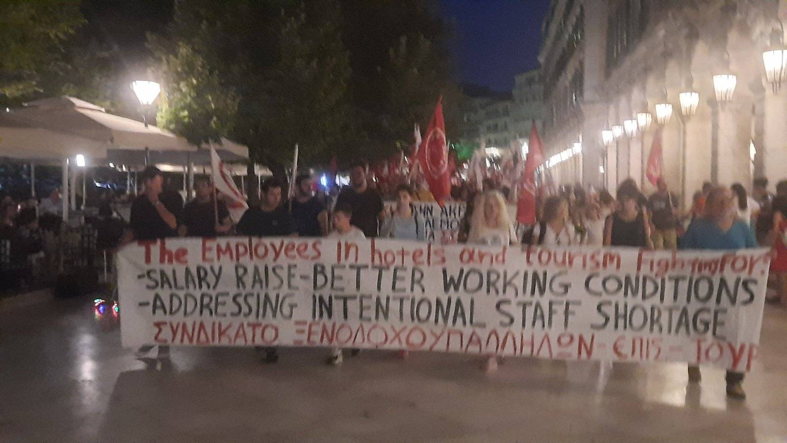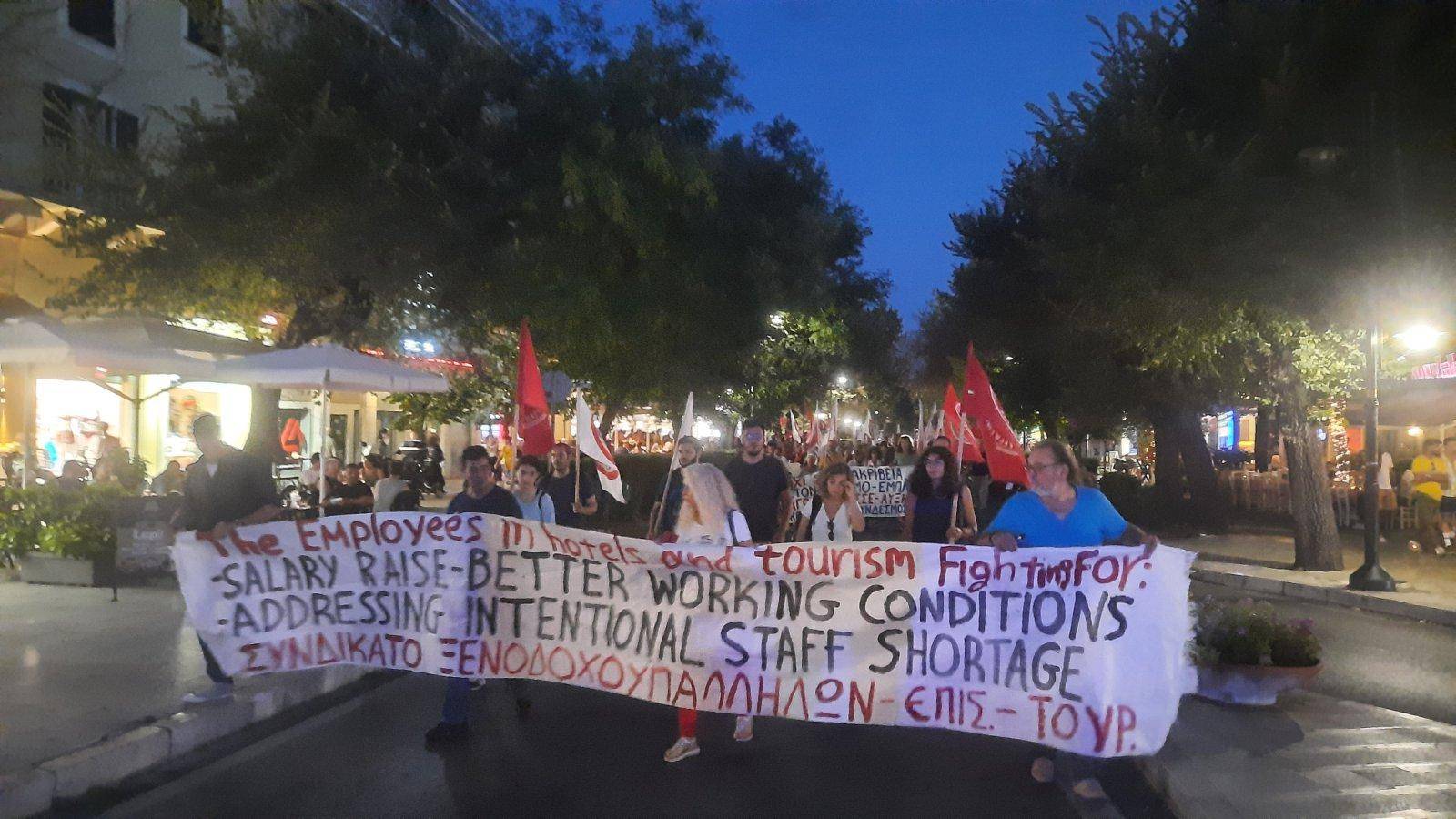 Με μεγάλη συμμετοχή στην απεργία και μαζικό συλλαλητήριο το απόγευμα της Παρασκευής, οι ξενοδόχοϋπάλληλοι της Κέρκυρας για άλλη μια φορά σήκωσαν ανάστημα διεκδικώντας αγωνιστικά αυξήσεις στους μισθούς, ανθρώπινες συνθήκες εργασίας, μείωση των τιμών στα προϊόντα λαϊκής κατανάλωσης, επαναφορά του επιδόματος ανεργίας των εποχιακών στο 6μηνο, επαναφορά του εφάπαξ στην 20ετια, μέτρα προστασίας της υγείας και της ασφάλειας στους χώρους εργασίας.