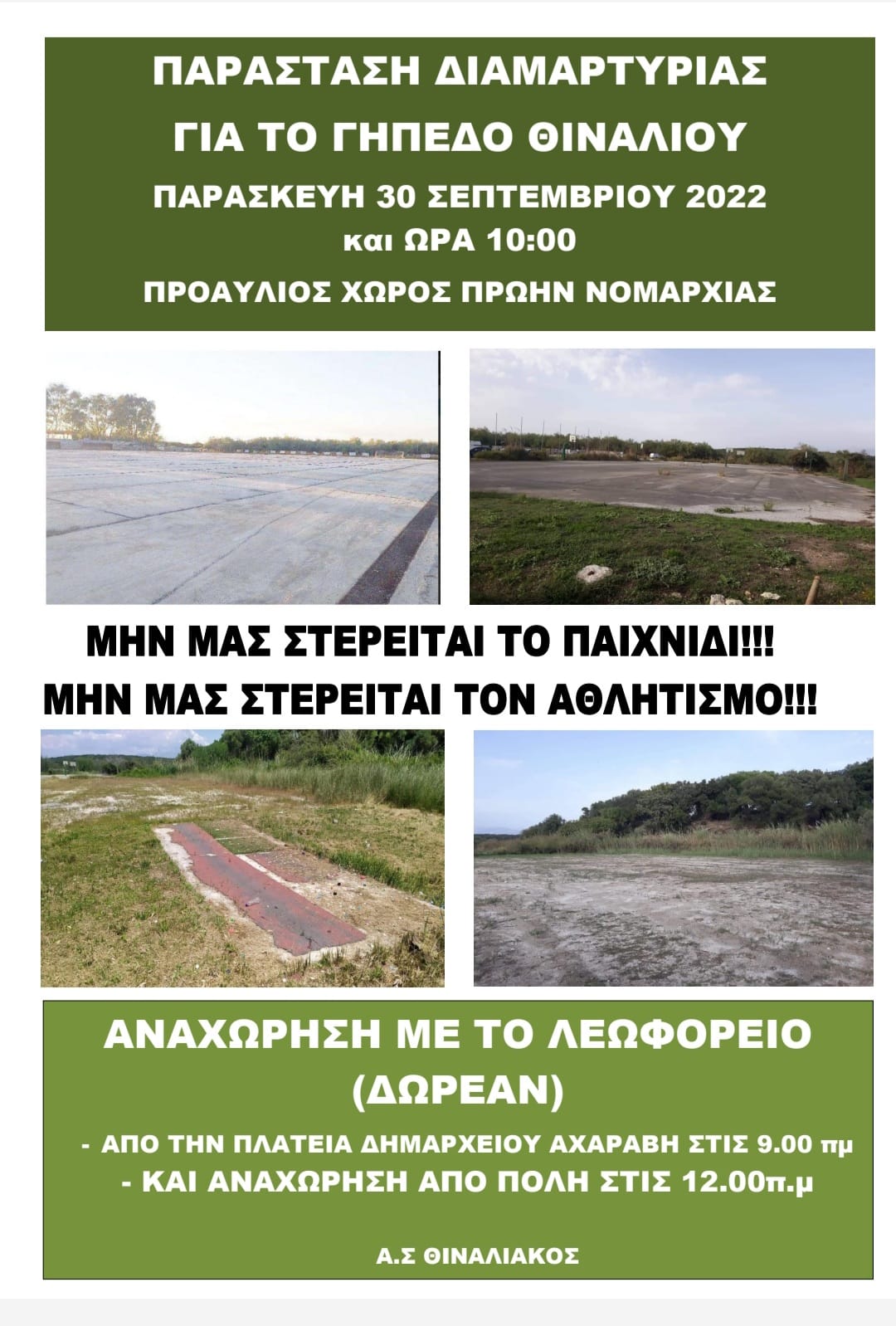 Οριστικοποιήθηκε η παράσταση διαμαρτυρίας που θα πραγματοποιήσει ο Θιναλιακός στην περιφερειακή αρχή. Μάλιστα, μίσθωσε και λεωφορείο για όσους θέλουν να συμμετέχουν σε αυτήν.