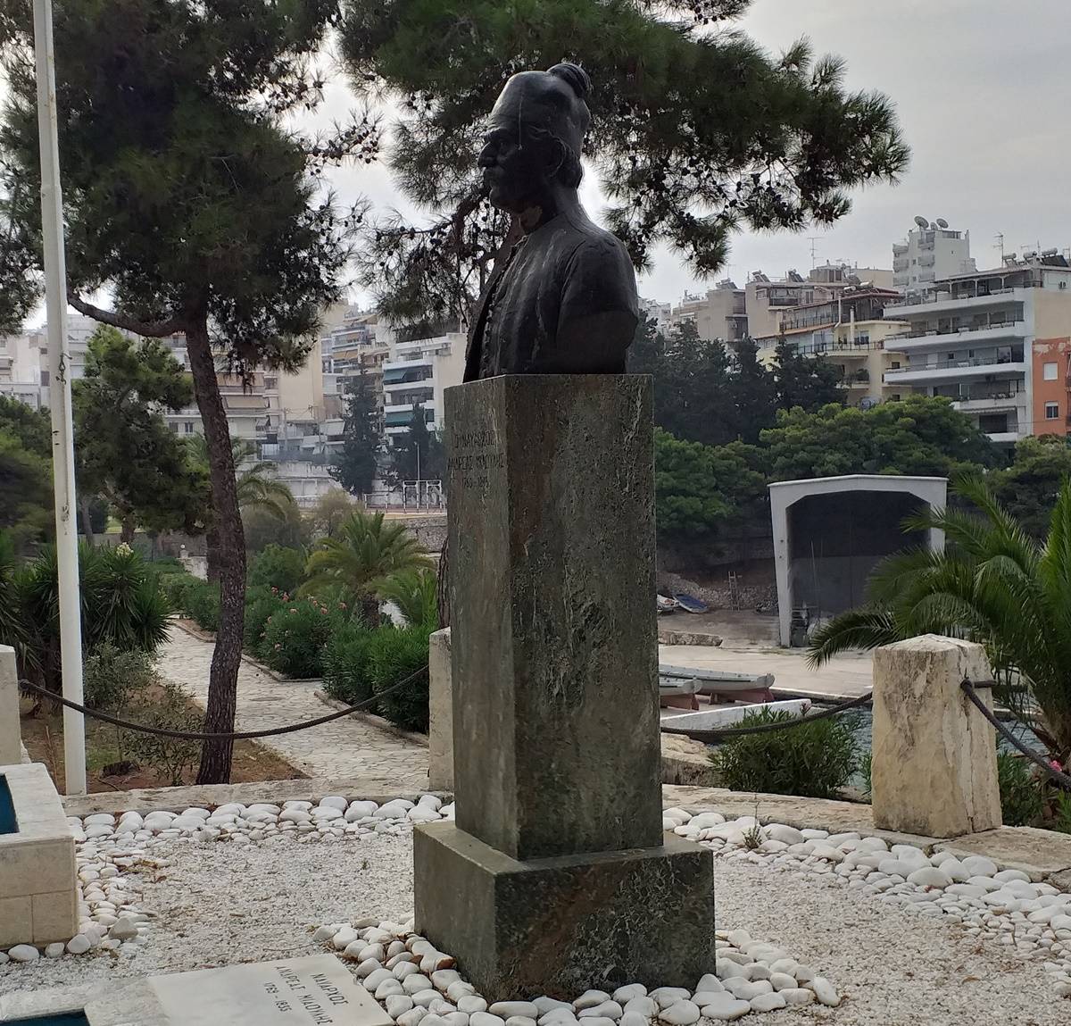 Στο μέσον μιας μικρής πλην όμορφα διαμορφωμένης αλέας, που υπάρχει στη νότια πλευρά της επικράτειας της Σχολής των Ναυτικών Δοκίμων, δίπλα στη θάλασσα, είναι στημένη η προτομή του Ανδρέα Μιαούλη ( 1769 – 1835 ), Υδραίου καραβοκύρη, ναυάρχου και εμβληματικού ναυμάχου του 1821, σε υστερότερο χρόνο και πολιτικού.
