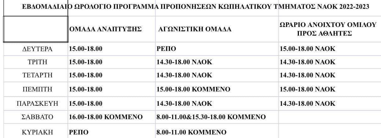 Για πληροφορίες και εγγραφές στο τηλέφωνο 6945100165 κος Αλαμάνος ή στις εγκαταστάσεις του ΝΑΟΚ καθημερινά 15:00-18:00.