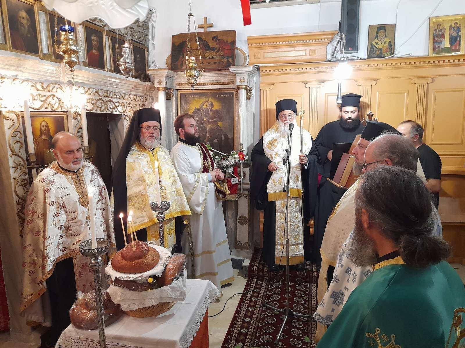 Ο Σεβασμιώτατος εξέφρασε την χαρά του, που σε αυτή την μικρή περιοχή, και σε αυτή τη μικρή εκκλησία, οι άνθρωποι έχουν καρδιές πυρωμένες για την Εκκλησία του Χριστού. Ευχήθηκε με τις πρεσβείες του Αγίου Δημητρίου, να κατευθύνεται η ζωή όλων μας από ιδανικά και αξίες, τα οποία ξεθωριάζουν στην σύγχρονη ζωή μας που κατακλύζεται από ιδιοτέλειες, οι οποίες μας κρατούν δέσμιους, και δεν μας οδηγούν στην αληθινή ελευθερία, την ελευθερία του Θεού.