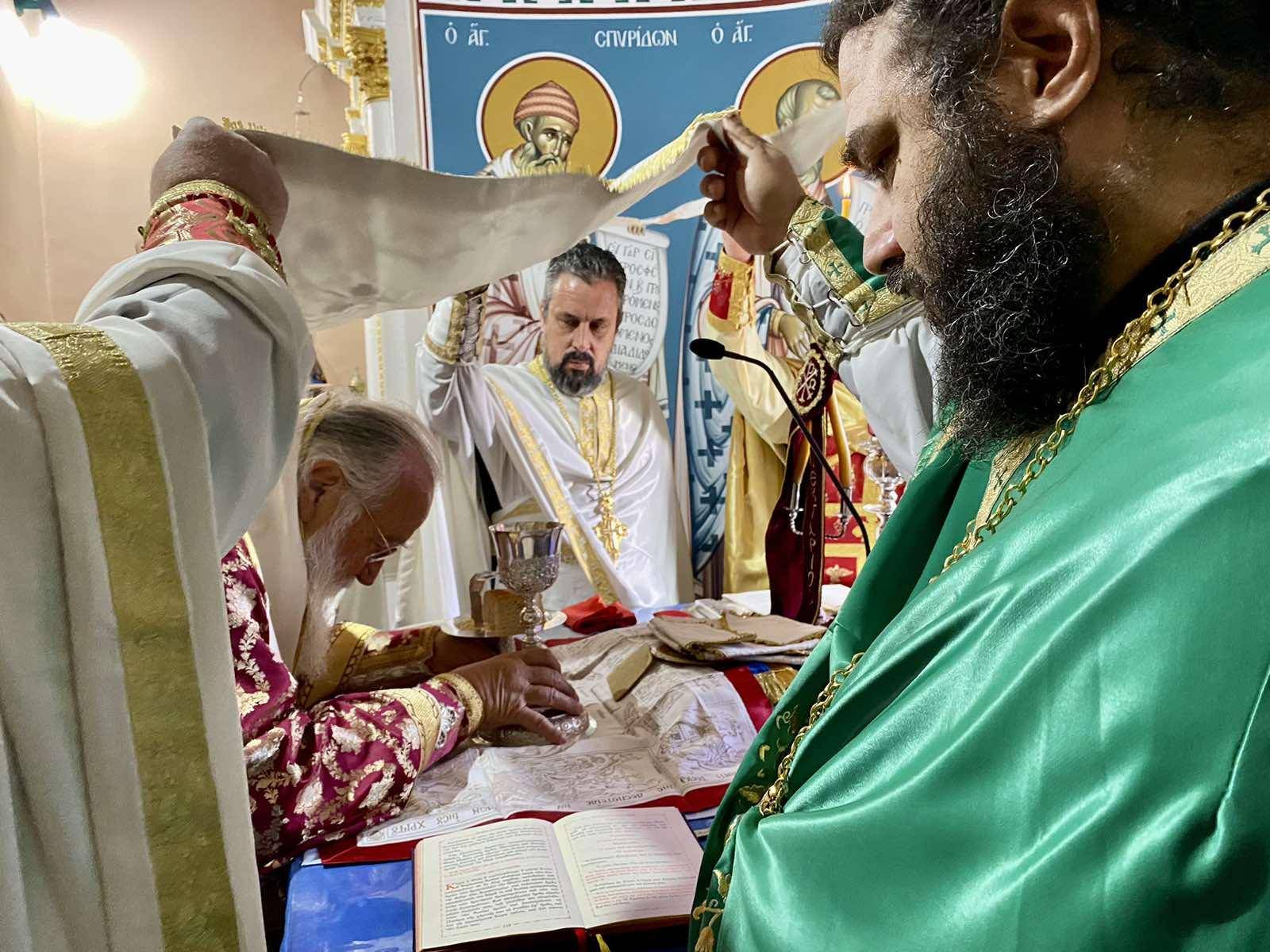 Ο Σεβασμιώτατος συλλειτούργησε με τον Ιεροκήρυκα και ηγούμενο της Ιεράς Μονής Υψηλής Θεοτόκου, π. Σπυρίδων Σκορδίλη, με τον ηγούμενο της Ιεράς Μονής Βλαχερνών Σκριπερού π. Αρσένιο Πεπέ, με τον αρχιμανδρίτη π. Αθανάσιο Χατζηνικολάου, αδελφό της Ιεράς Μονής Αγίας Τριάδος Υψηλής, συμπαρισταμένου του αρχιμανδρίτου π. Ρωμανού Κανιτάκη, και αρκετούς εφημερίους από τις πλησιέστερες ενορίες, καθώς και του Ιεροδιακόνου π. Ανδρέα Γκιόκα.