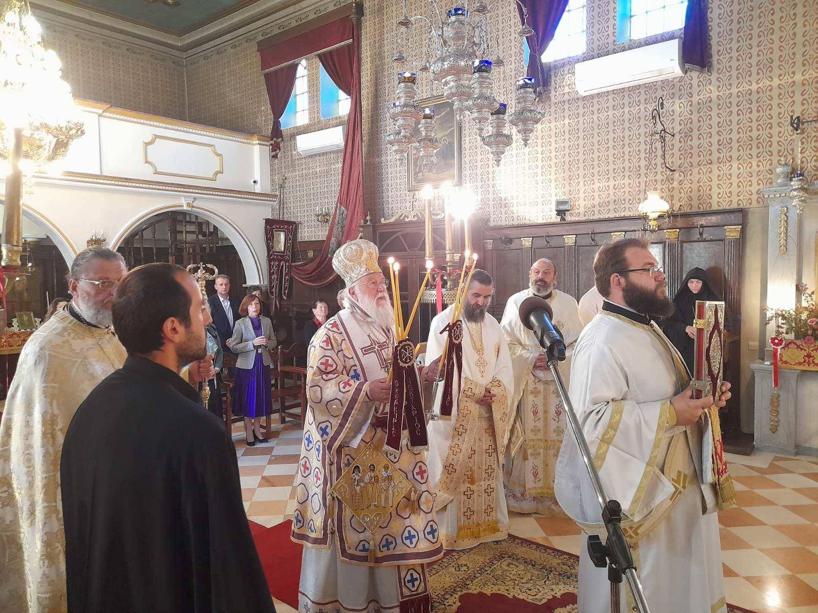 Στο τέλος ο Σεβασμιώτατος ευχαρίστησε του πιστούς για την συμμετοχή τους στη Θεία Λειτουργία, ευχαρίστησε τους πατέρες που συλλειτούργησαν, τον αρχιμανδρίτη π. Σεραφείμ, τον π. Δημήτριο αλλά και τον π. Θωμά, ο οποίος εργάζεται στην καρδιά της Ιεράς Μητροπόλεως, διακονεί φιλότιμα στο χώρο της φιλοξενίας, των κατασκηνώσεων, στα γραφεία της Ιεράς Μητροπόλεως, αλλά και εν γένει της Ιεραποστολής.