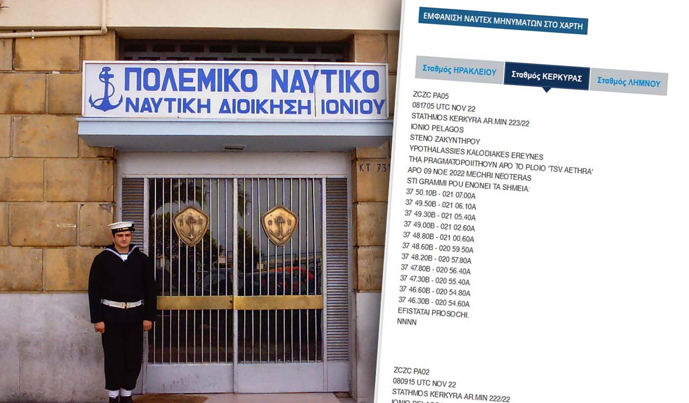 Εκδόθηκε σήμερα navtex (ναυτική οδηγία) από τον Ναυτικό Σταθμό Κέρκυρας (ΝΑΣΚΕ) για την έναρξη σεισμικών ερευνών στο Νότιο Ιόνιο από το πλοίο “TVS Aethera” στο πλαίσιο των ερευνών για την εξεύρεση κοιτασμάτων υδρογονανθράκων.